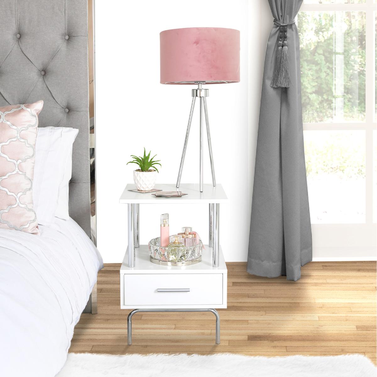 Introduce a white bedside table for bedroom furniture. This sleek and versatile table enhances your bedroom decor, providing a stylish and functional platform for your essentials. elevate your space with the contemporary design and practicality of this white bedside table.
