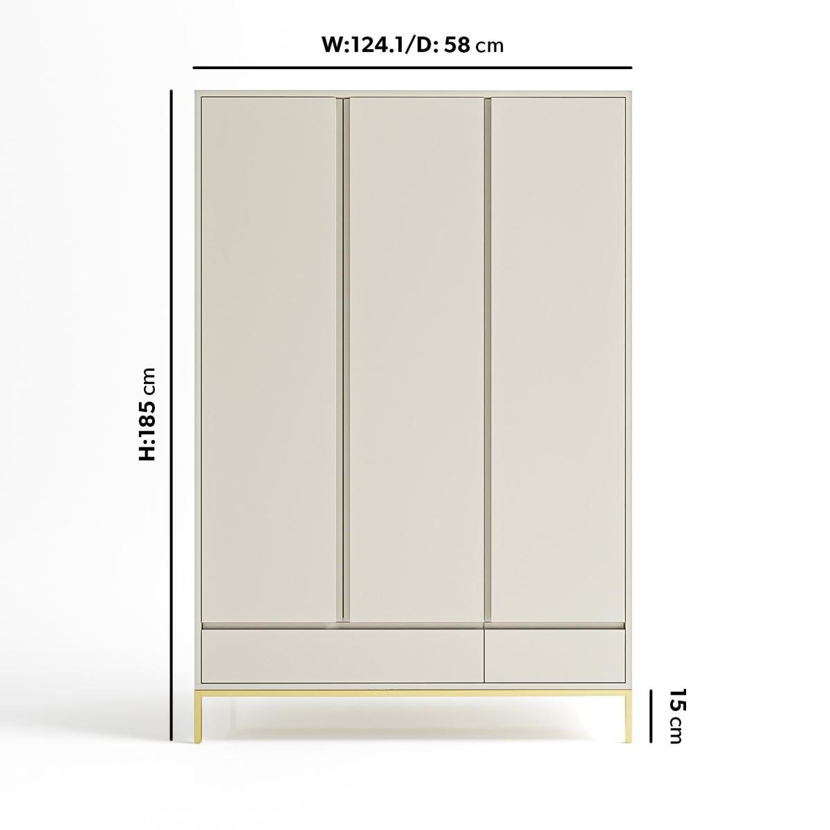 Modern Beige 3-Door Triple Wardrobe with Drawers - Zion