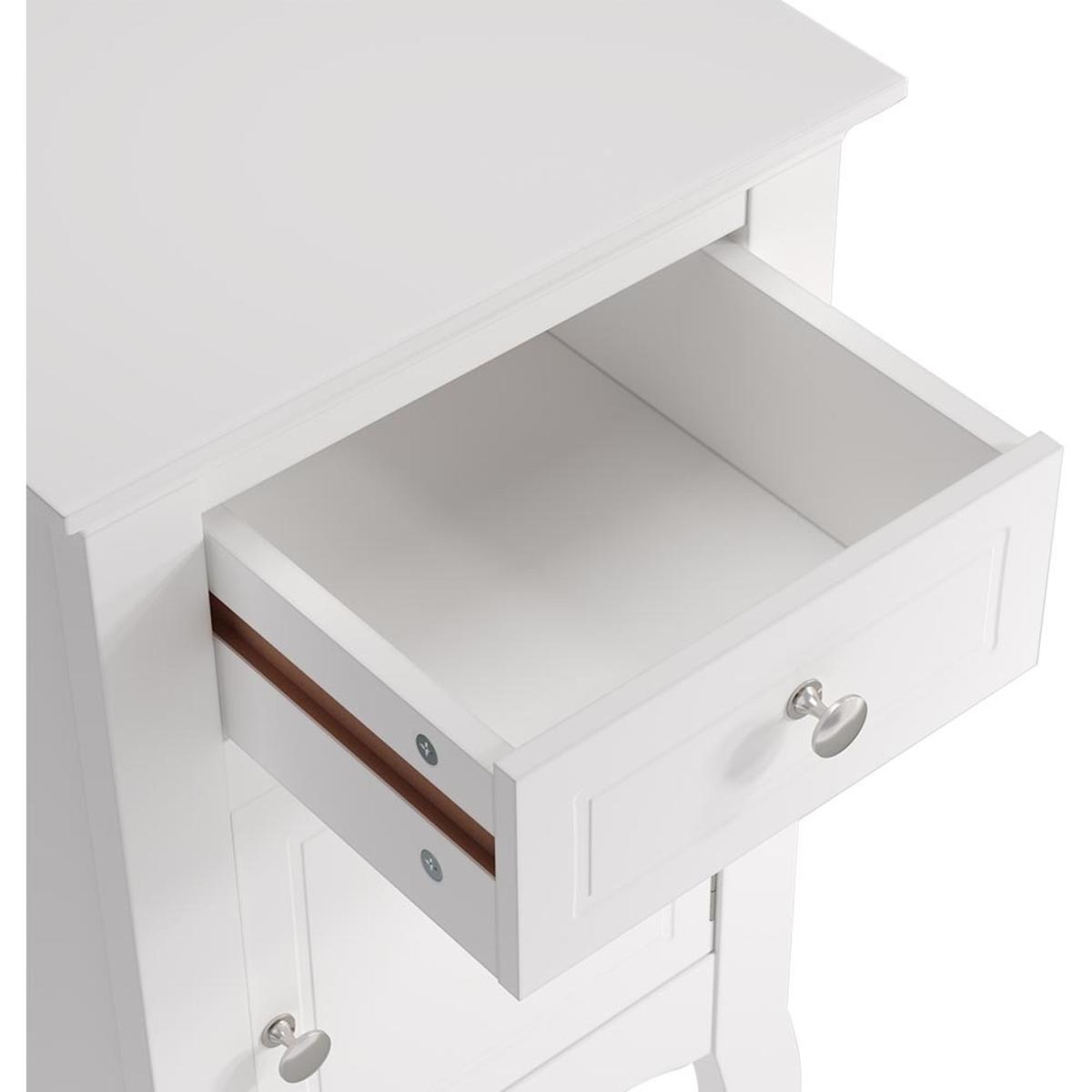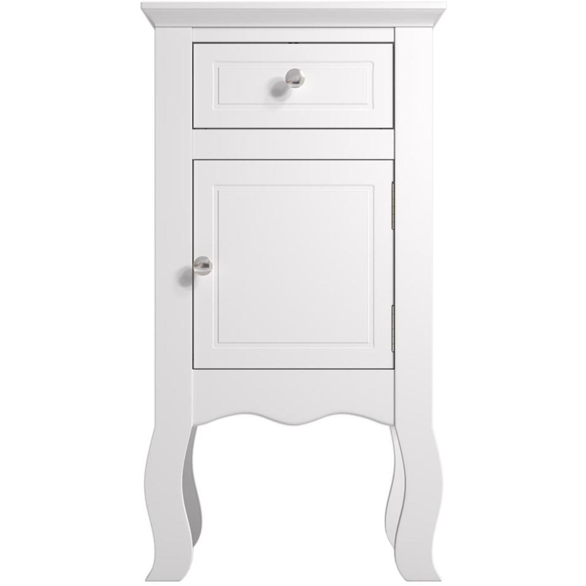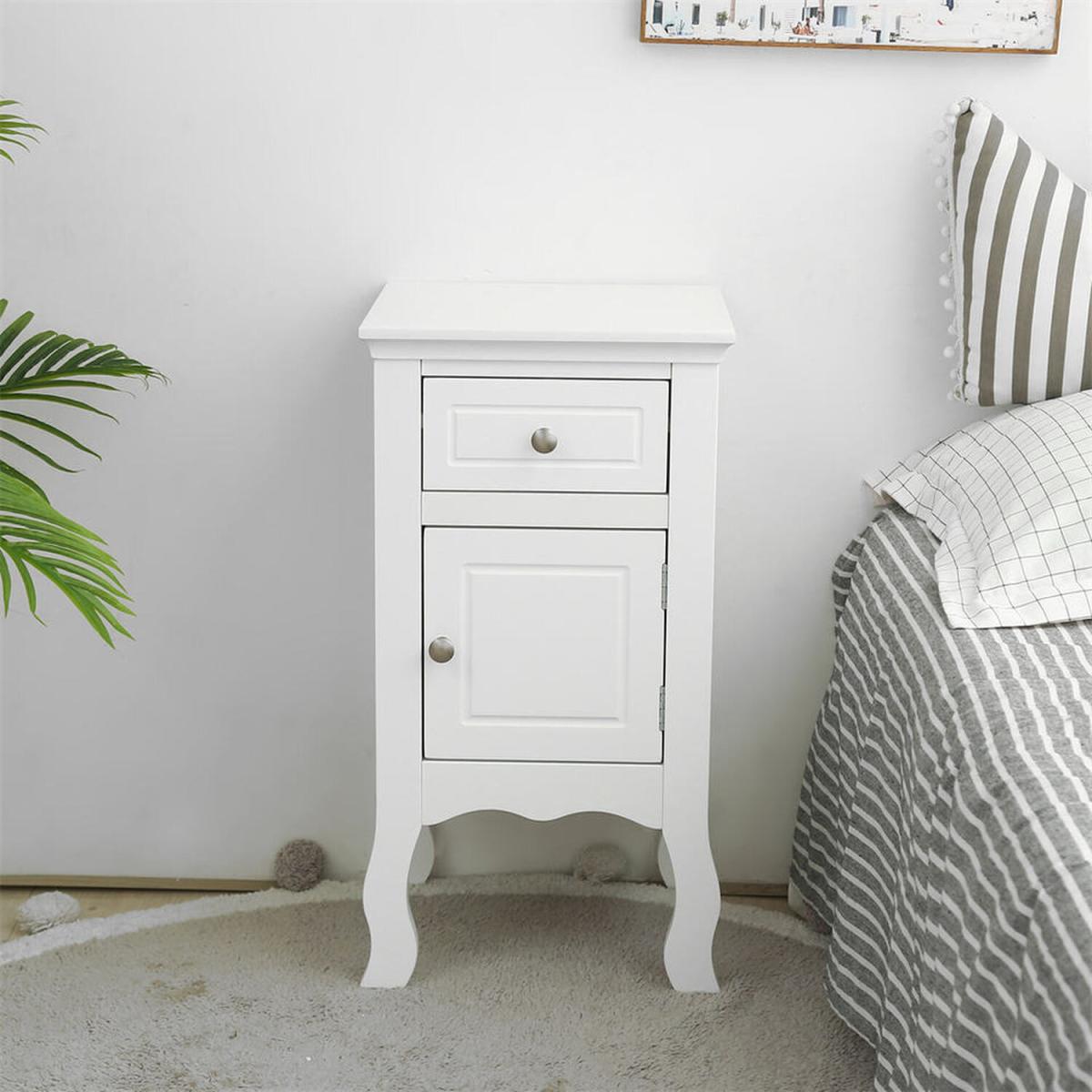 This beside table is made of premium MDF with NC paint, ensuring great sturdiness, ensures excellent durability and stability. The exquisite grey finish, curved feet and unique wave-shaped bottom make the table an elegant and stylish addition to your home. Includes a spacious tabletop, pull-out drawer and storage cabinet, large storage space to keep your phone, facial tissue, cups or bedside readings at hands, make your various items well organized. Each drawer glides smoothly and a specialized stopper ensures drawers stay in place when fully extended. Curved table corner design with greater bearing capacity. Flat packing, easy and quick to assemble with detailed instruction. Overall, this practical and good-looking end table is multi-functional that can be placed in the bedroom, living room, entryway or anywhere you need.