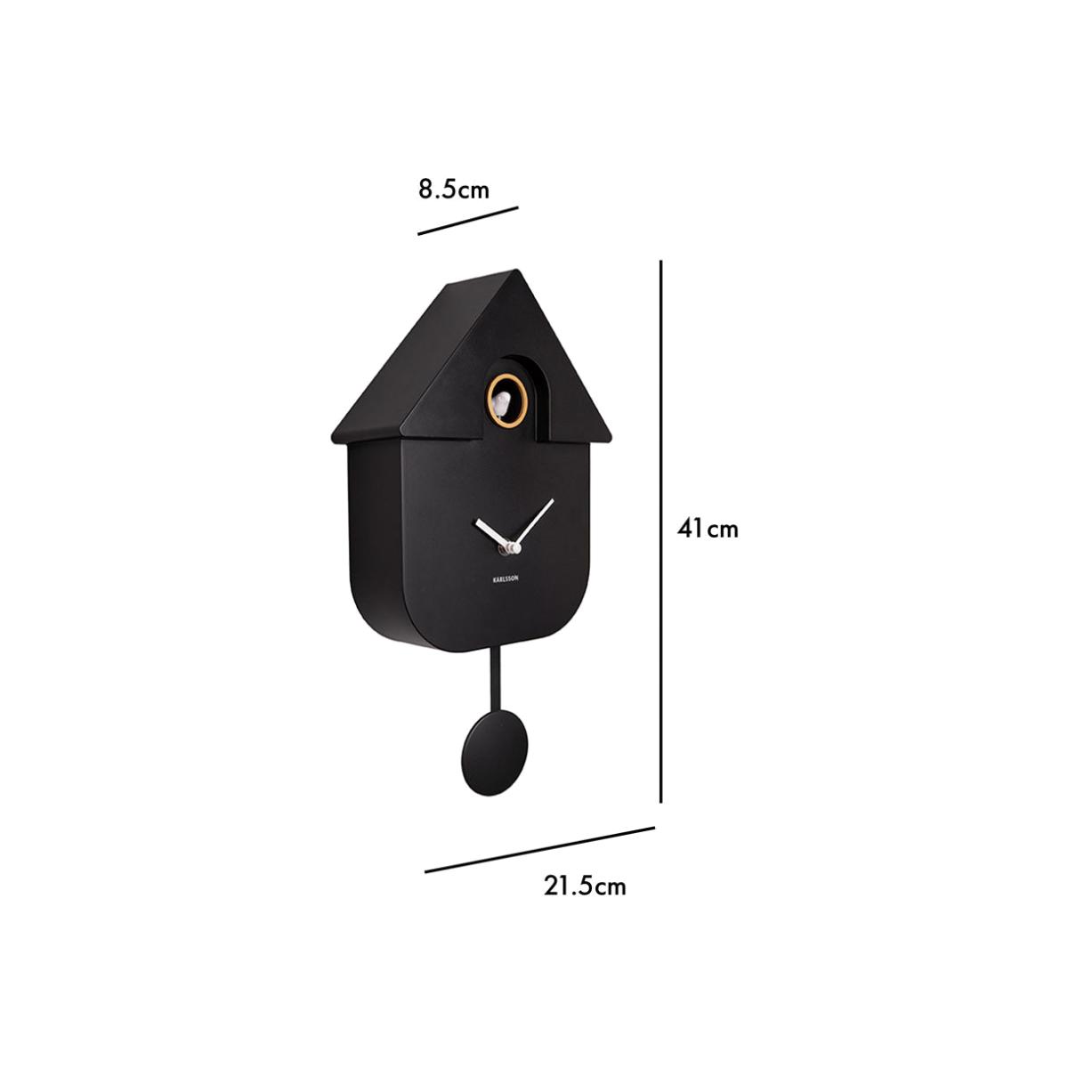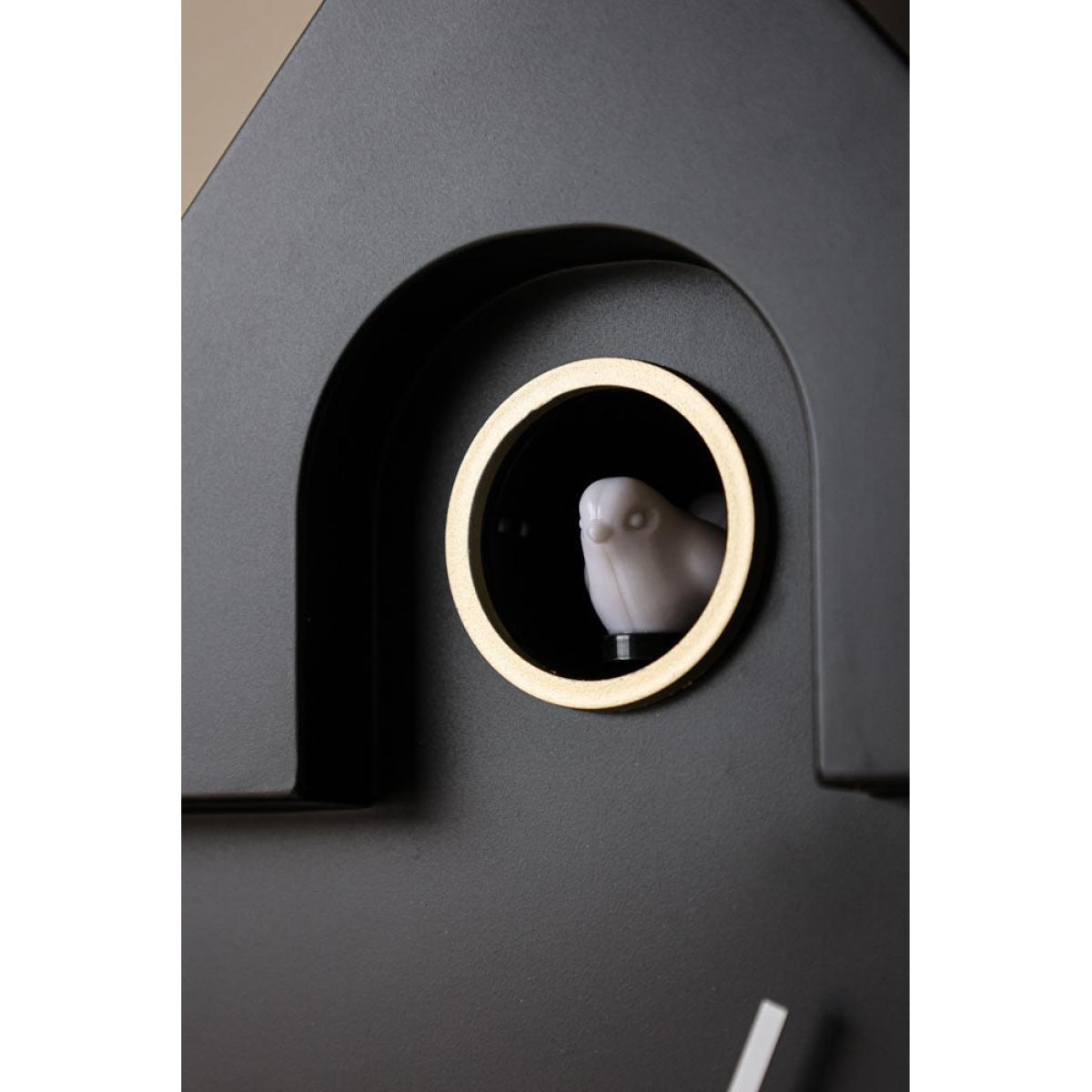 About The Modern Black Cuckoo ClockA marvellous addition to your walls that is fabulously functional and dazzling in design, the Modern Black Cuckoo Clock will add a touch of character to any space. Featuring sleek lines in the shape of a house with matte soft touch plastic and minimalist hands, this Wall Clock is a dazzling accessory with a little bird that pops out to say ‘cuckoo’ every hour. But don’t worry, it’s clever design means that you can set it to not sing or move during the night!Why We Think You’ll Love The Cuckoo Analog ClockShowcasing a charming clock face in monochrome with a touch of gold, a beautiful singing bird and a swinging pendulum, this is a piece of one of a kind art in itself. With a peaceful yet striking design, this Modern Wall Clock can be paired with any scheme and it’s perfectly practical for checking the time. The little singing bird will no doubt remind you of this quirky clock on the hour!Where To Style The Singing Bird Pendulum ClockFor something a little different, why not incorporate this black wall clock into a monochrome art display to add a totally quirky edge to your living space. The sleek design works perfectly as a Black Kitchen Wall Clock to add interest to an otherwise empty wall. This cuckoo clock will never fail to impress in any interior and it’s a lovely gift idea for absolutely anyone too!