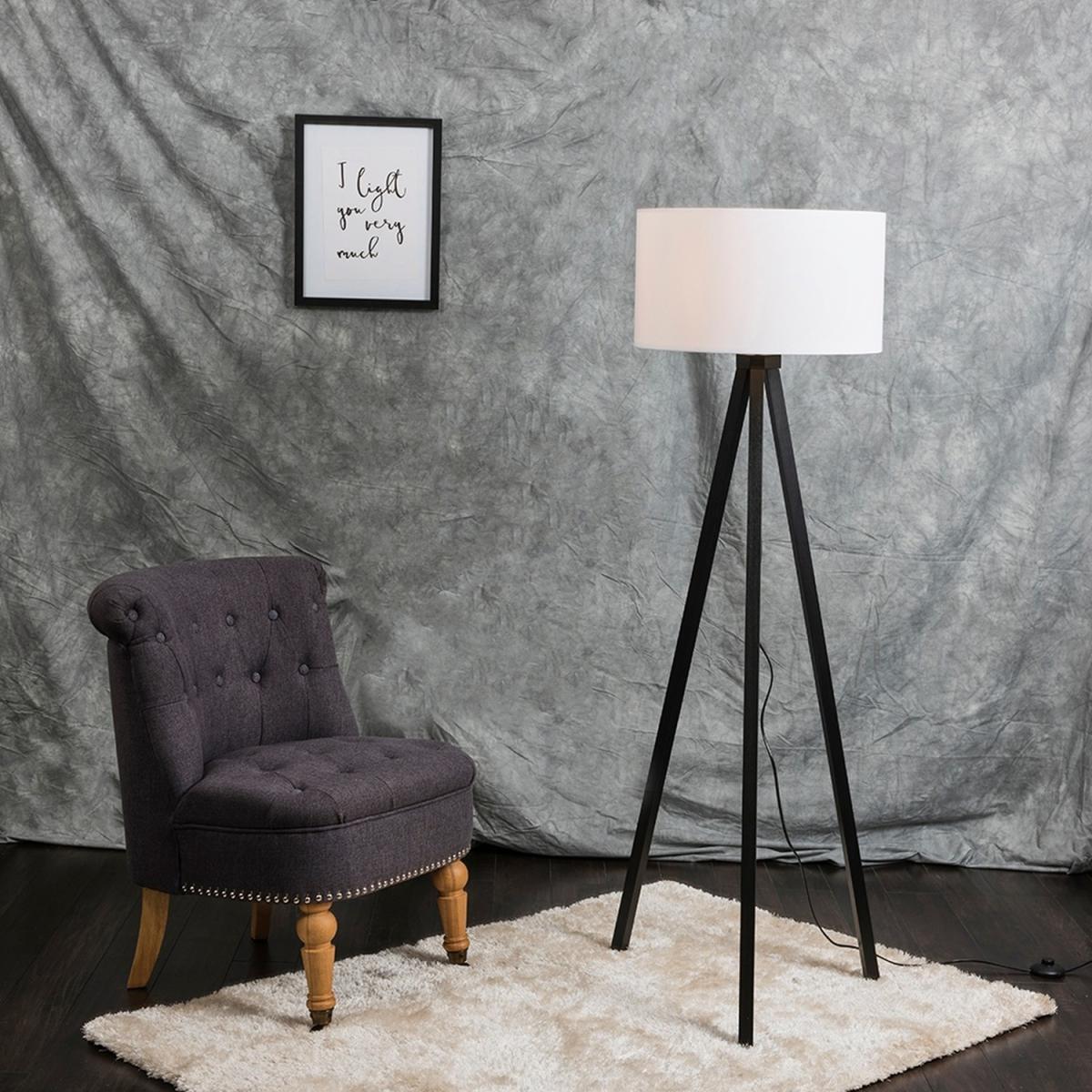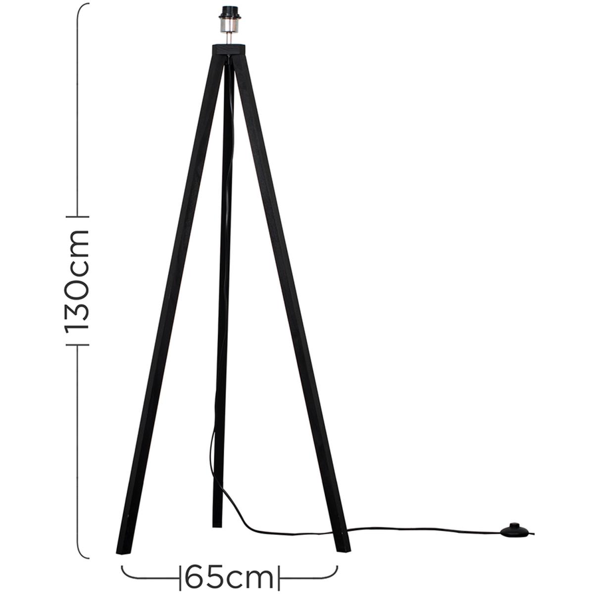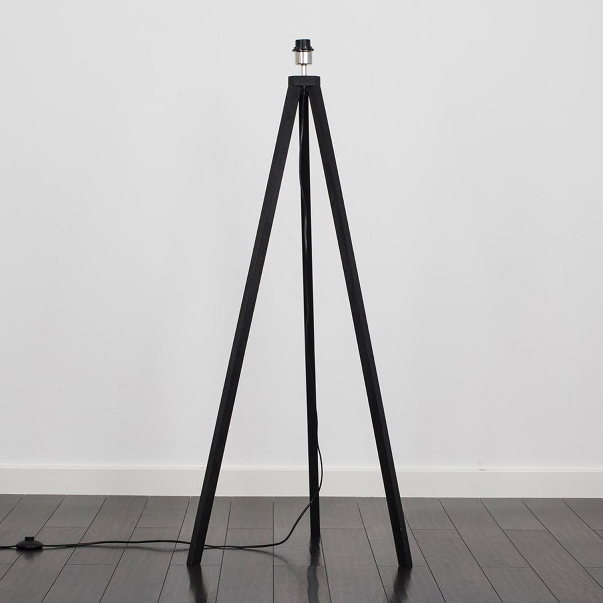 Modern tripod style floor lamp base in a black wood finish, which features an in-line onoff switch for easy use. Floor lamps are a great way to bring additional lighting to a room or you can use them reduce your main light output, and create a more relaxing moodatmosphere. An instant update, you can change your room style in seconds. Lamp base only - pair with a shade of your choice.