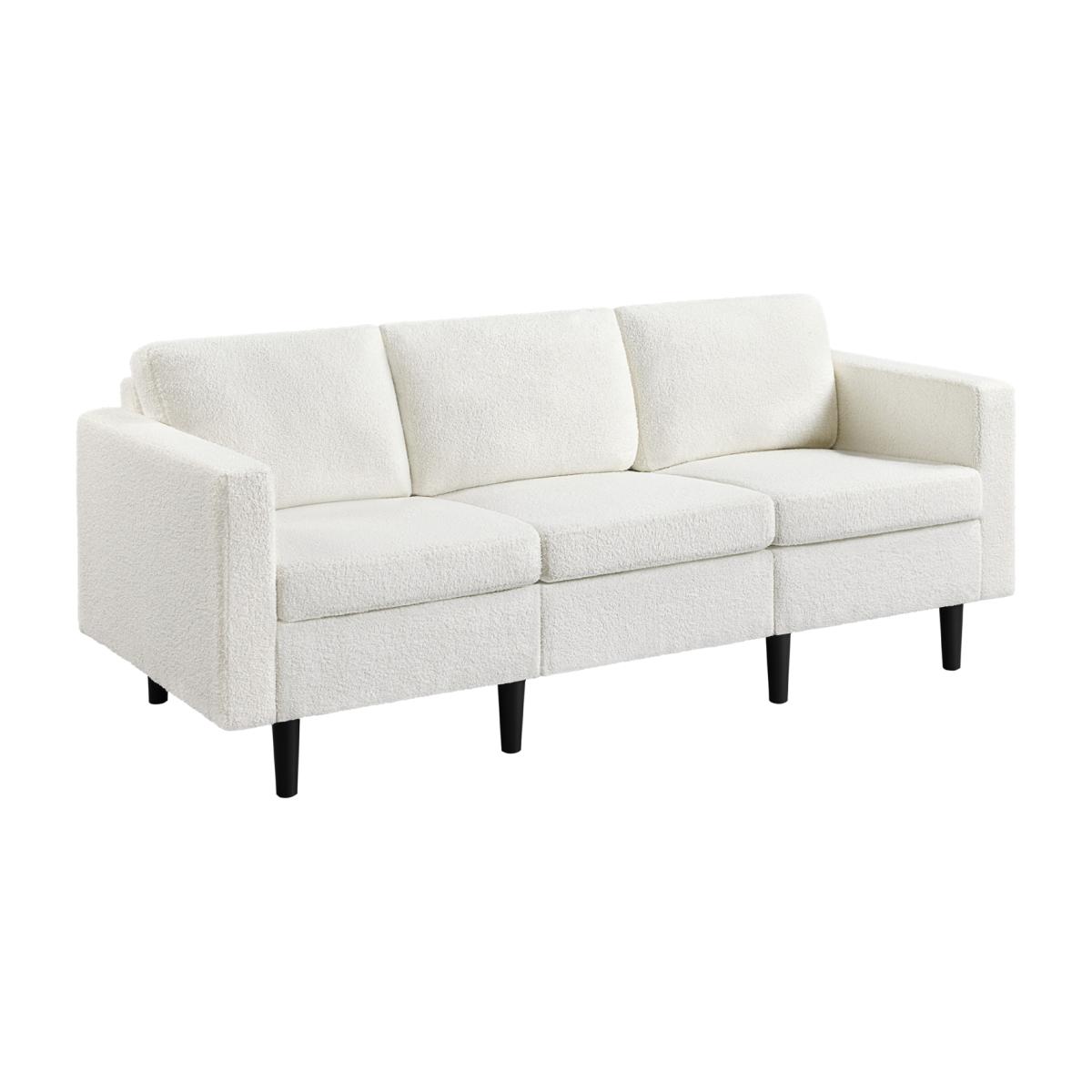 Modern Boucle Fabric 3-Seater Sofa - Ivory