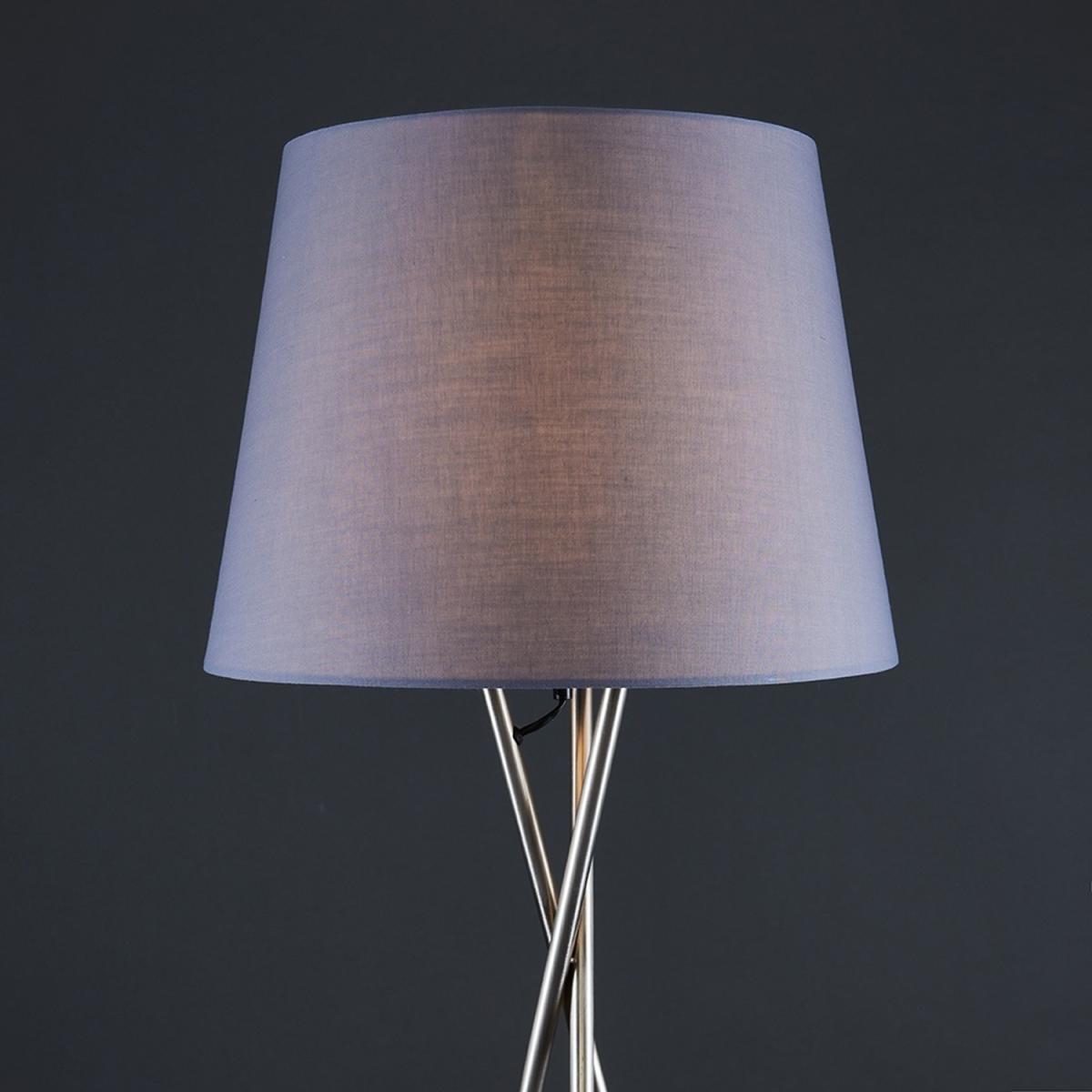 Modern Brushed Chrome Tripod Floor Lamp With Grey Fabric Shade - Silver