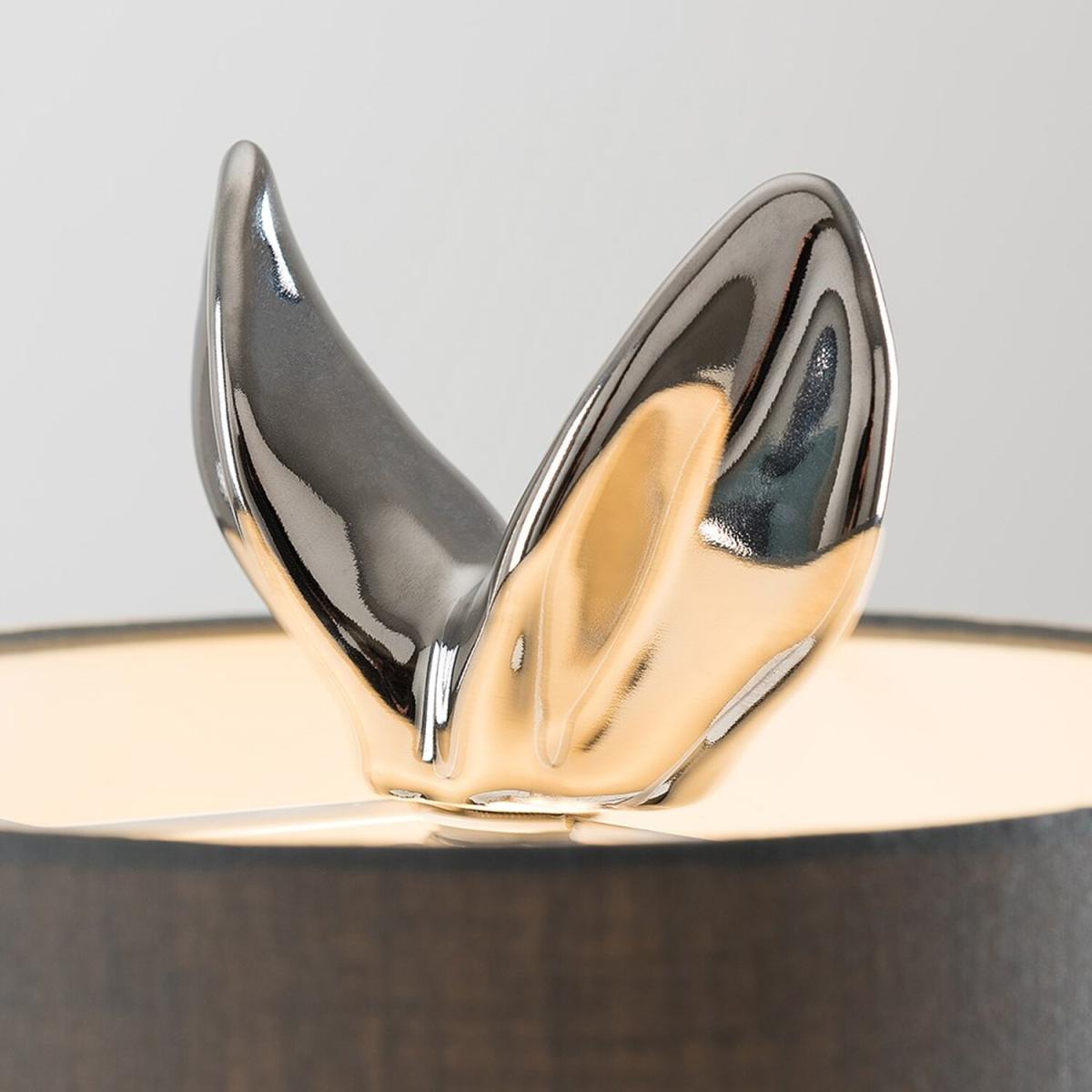 Modern Chrome Ceramic Rabbit Hare Animal Table Lamp With Grey Shade - Silver