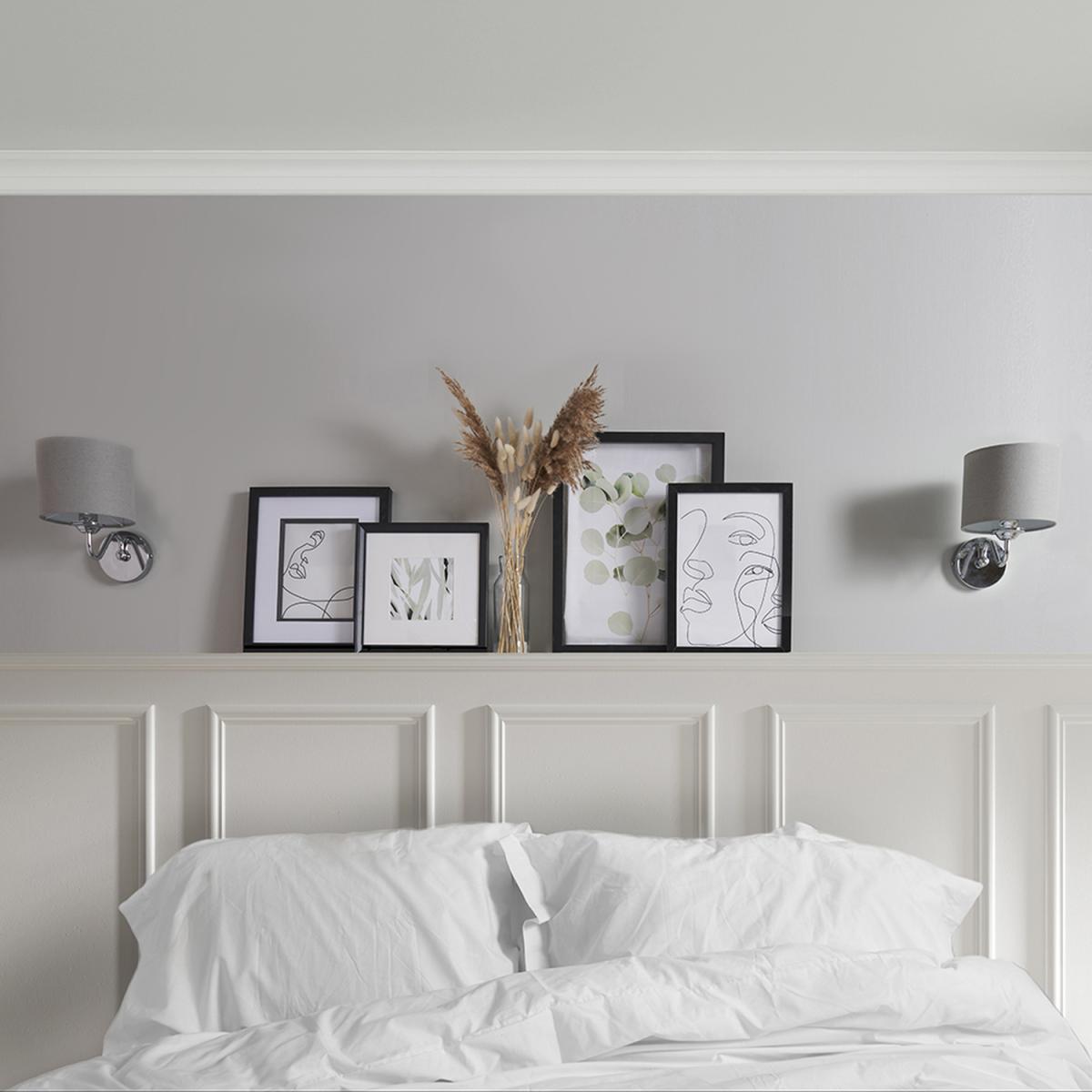 I love this wall light for its sleek modern look, with the chrome arm adding a contemporary edge and the grey linen drum shade lending a softer, more inviting touch. It works particularly well in minimalist or Scandinavian interiors, where clean lines and neutral tones are key, but it can also add a polished detail to more traditional schemes when paired with crisp whites or muted colour palettes. Practical styling tips include positioning it beside a reading nook or bedside, where its adjustable arm offers functional task lighting, or lining it up symmetrically in a hallway to create a balanced visual effect. Its understated elegance makes it versatile enough to elevate various spaces without overwhelming them.