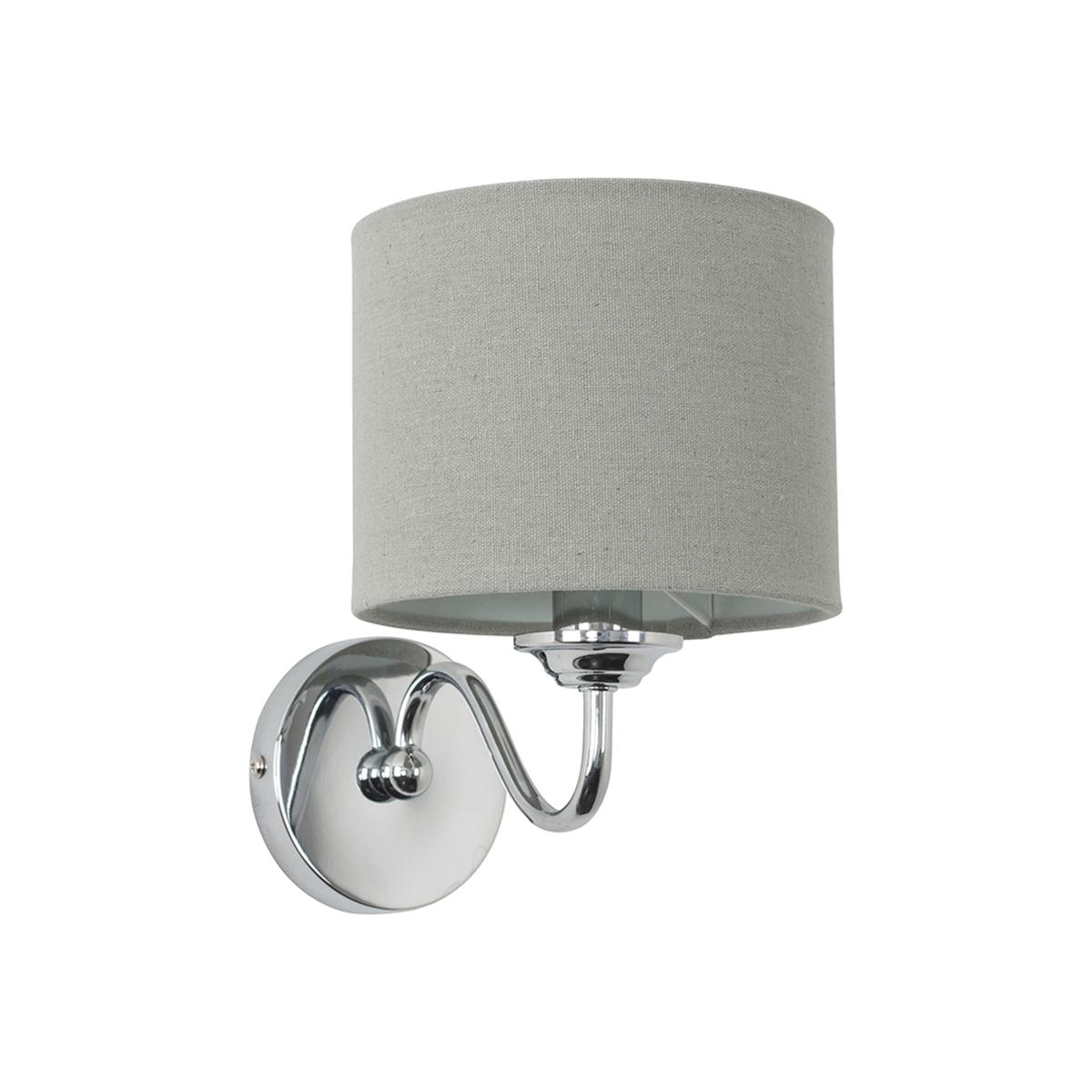 Modern Chrome Curved Arm Wall Light Fitting With Grey Linen Drum Shade - Silver