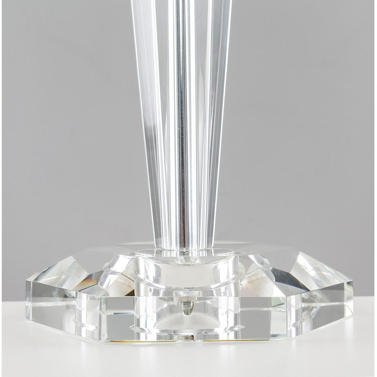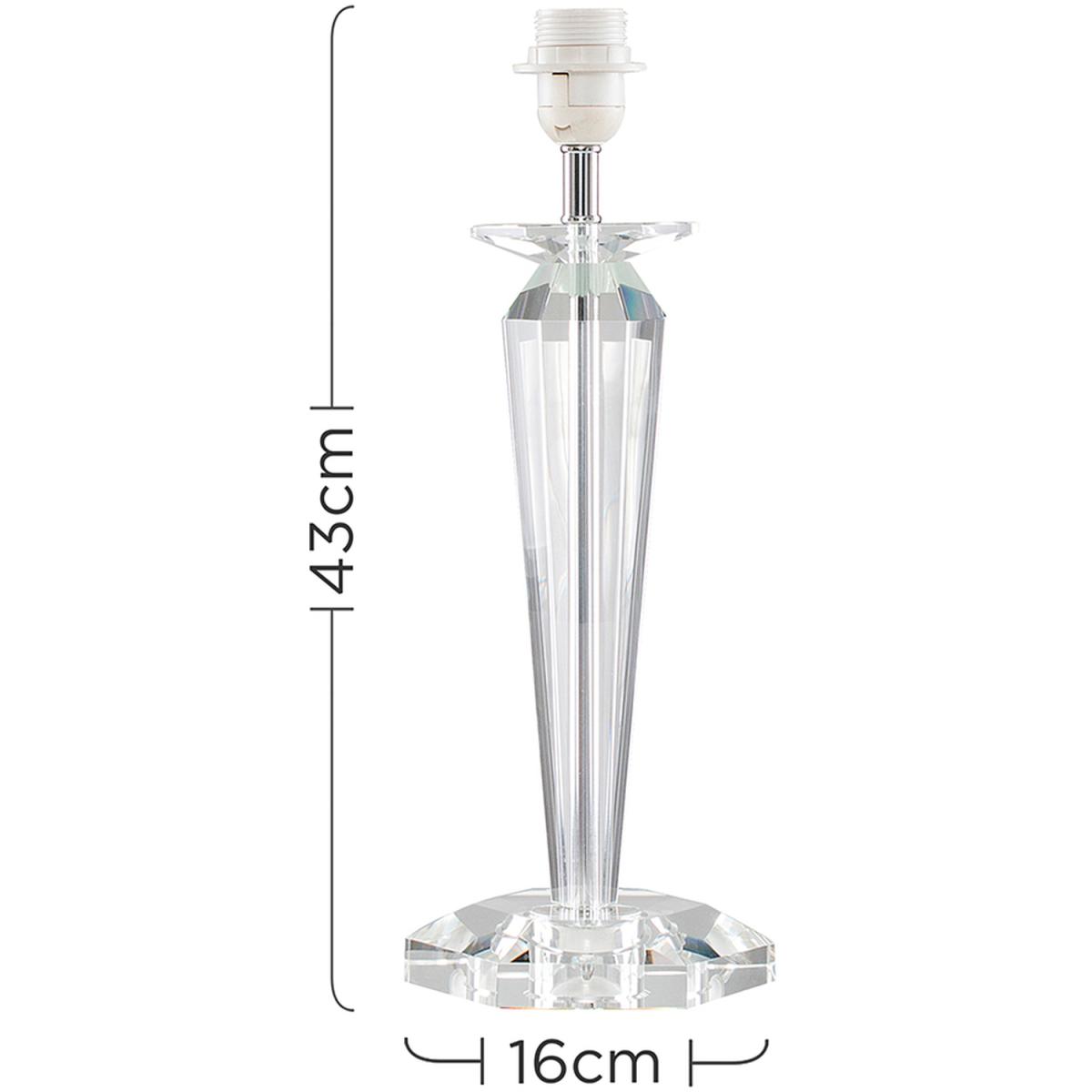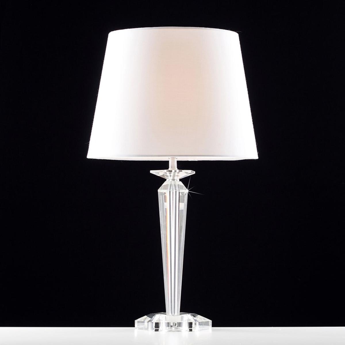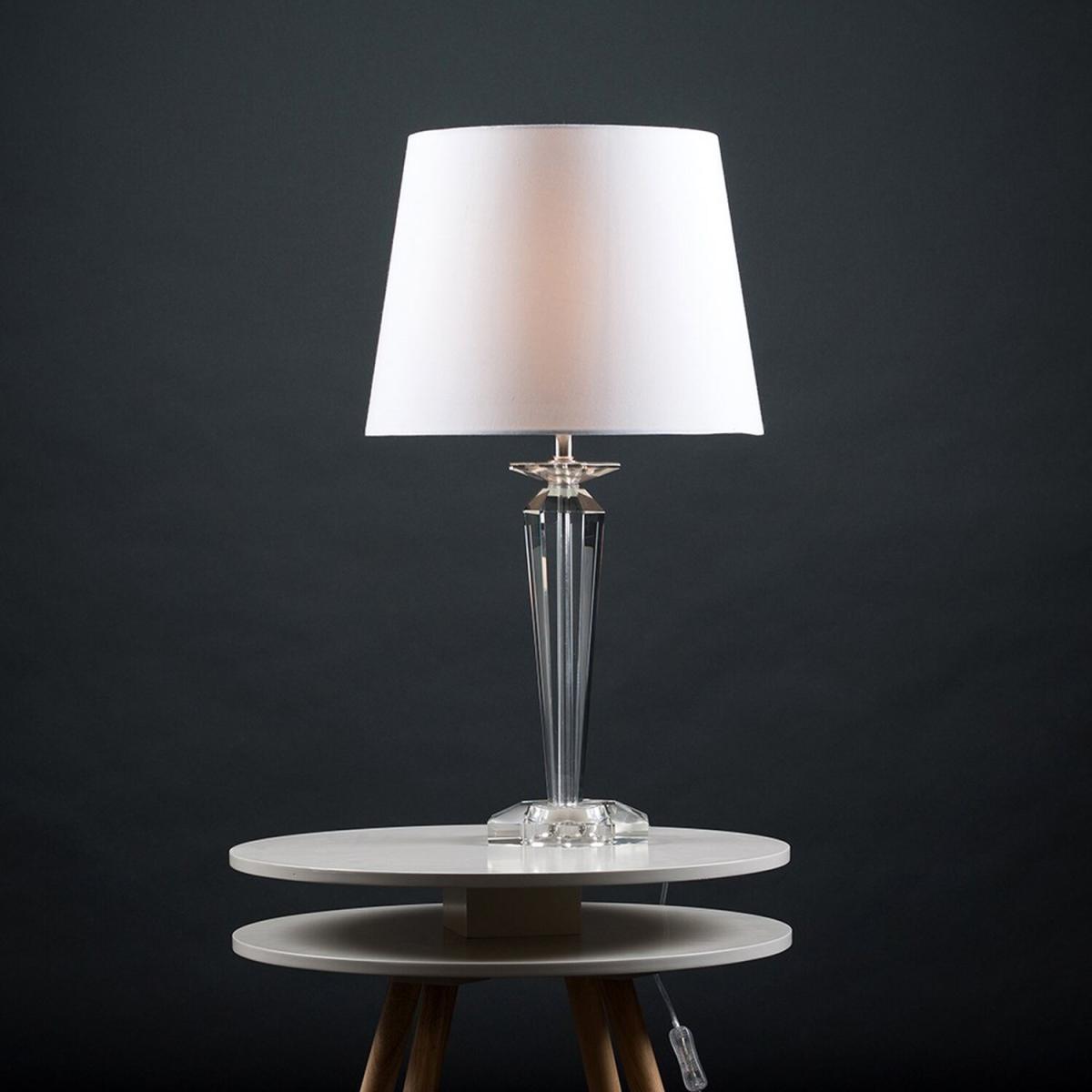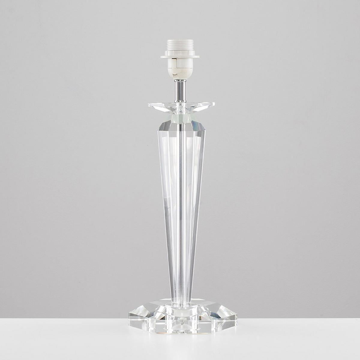 Modern clear genuine K9 crystal table lamp base. Simply pair with a shade of your choice to suit your own decor within the home. Features an in-line onoff switch for easy use. Table lamps are a great way to bring additional lighting to a room or you can use them reduce your main light output, and create a more relaxing moodatmosphere.