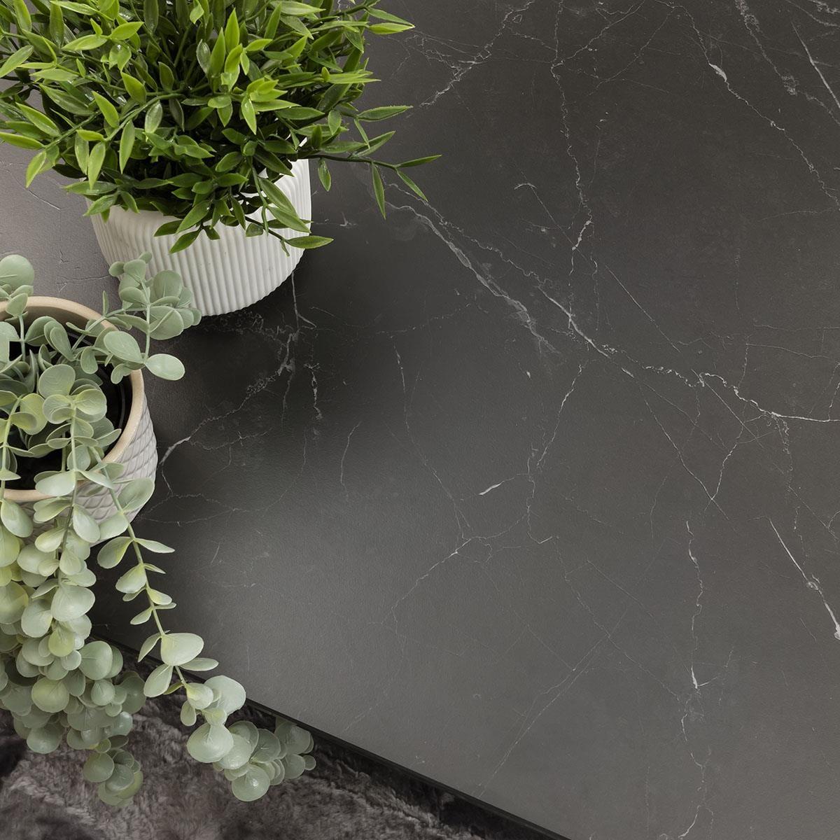 Go sleek in the living room with the Watson Black Marble effect Ceramic Coffee Table. Full of charisma, the Watson Coffee table offers a contemporary chic style for your home. It boasts a wonderful premium quality black ceramic table top with a beautiful marble-effect finish - ceramic is a stain, scratch and heat resistant for style that lasts. This combined with its striking, yet elegant, legs and dramatic black powder-coated finish give Watson 100cm square coffee table its bold personality. Perfect for a modern living room or open-plan kitchen-diner. If you need more information about this product, use the Live Chat service to speak to the team or send us a message. Spread the cost our with interest-free finance options. Minimum spend applies. W100cm D100cm H45cm Modern Black Coffee Table with Black Ceramic Top View matching furniture in the Watson range