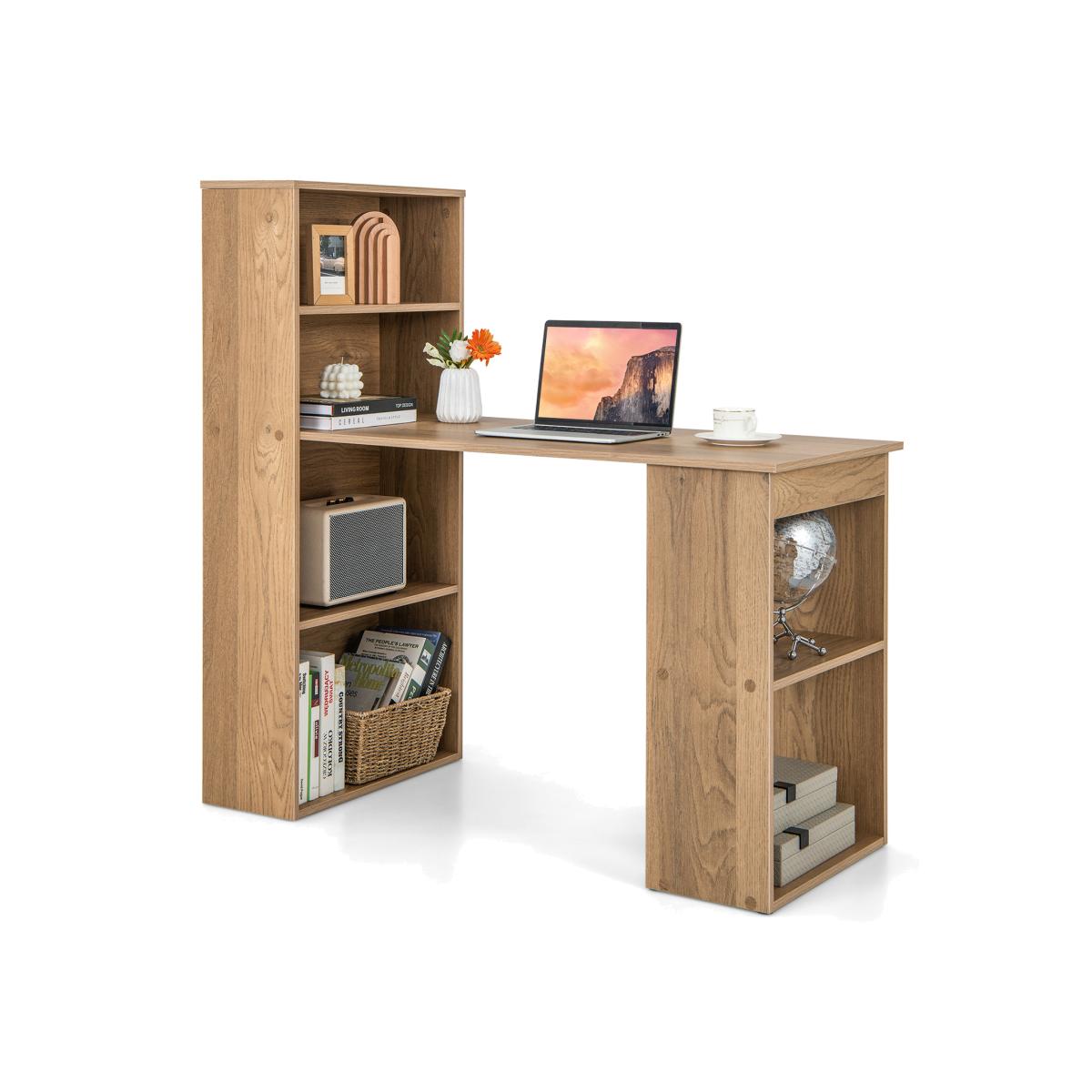Then choose this computer desk & bookshelf combo. Combining a desk, a 4-tier bookshelf, and a 2-tier storage shelf, this unique workstation features a great storage solution for your books, decorations and sundries while providing a generous workspace. It is worth mentioning that you can remove the middle shelf of the storage rack when you install the desk so that it is large enough to accommodate your computer post.