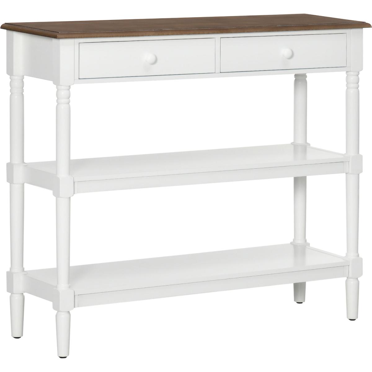 With this beautiful console table, you can bring a sense of elegance in to your living space. Our hallway table has a top to display pictures, knick-knacks and much more the open shelves underneath allowing you to place storage boxes, plus, you can use the drawers to store matching items out of sight. Adopt up-to-date chic in your living room, your bedroom, your entrance with this console table with shelves and drawers.