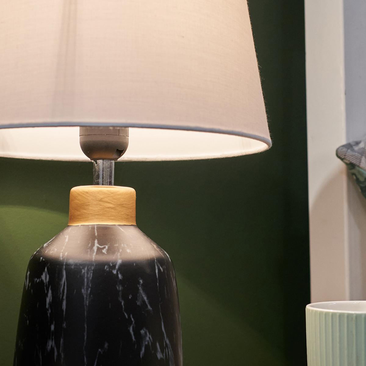 Simplicity meets style with our Selma table lamp with white Aspen shade. It's subtle marble effect accented with a copper cap is the ideal choice for any modern home. Paired with a fully assembled tapered shade in either black or white. A great addition to your side table or as a pair of statement bedside lamps Requires one 40W ESE27 bulb or LED equivalent