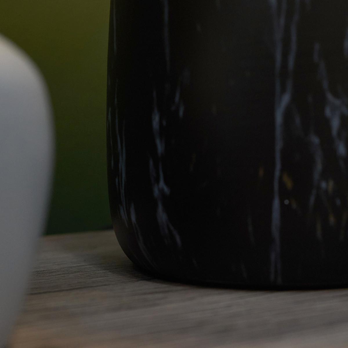 I love this lamp for its sleek, contemporary look with a tactile combination of black marble effect and a white shade, making it versatile for both minimalist and modern interiors. It works particularly well in living rooms or bedrooms that feature neutral tones or industrial-chic decor. Practical styling tips include pairing it with brass or gold accents to enhance the copper cap detail, or placing it atop a dark wood or marble side table for a cohesive, sophisticated feel. Its size and design make it an excellent statement piece without overwhelming the space, while the white shade ensures it provides soft, inviting light.