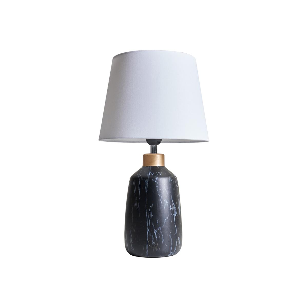 Modern Copper Caped Black Marble Effect Table Lamp With White Shade - Black