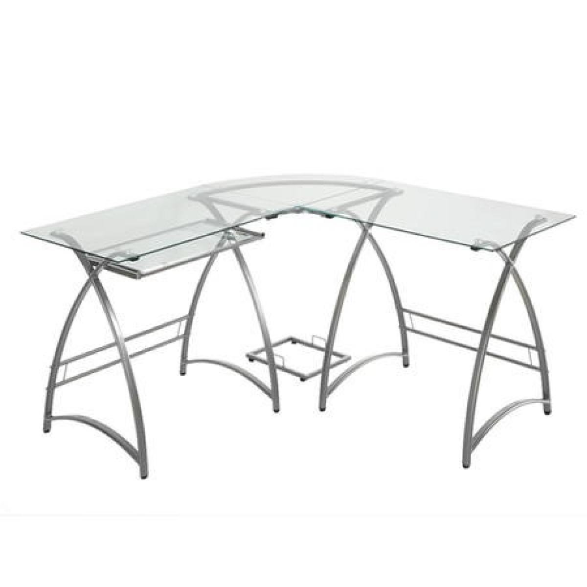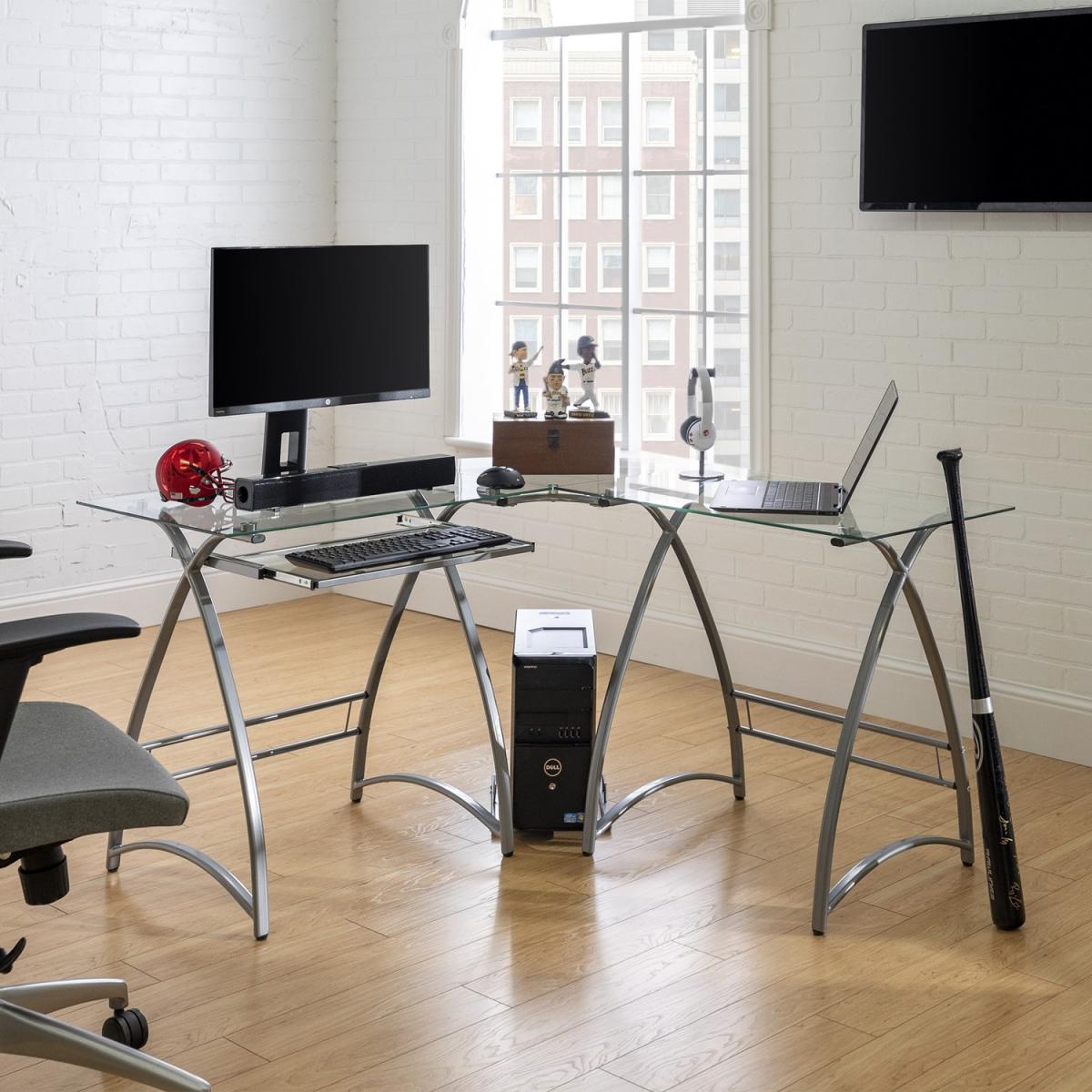 Modern Corner Desk in Silver with Glass Table Top - 51