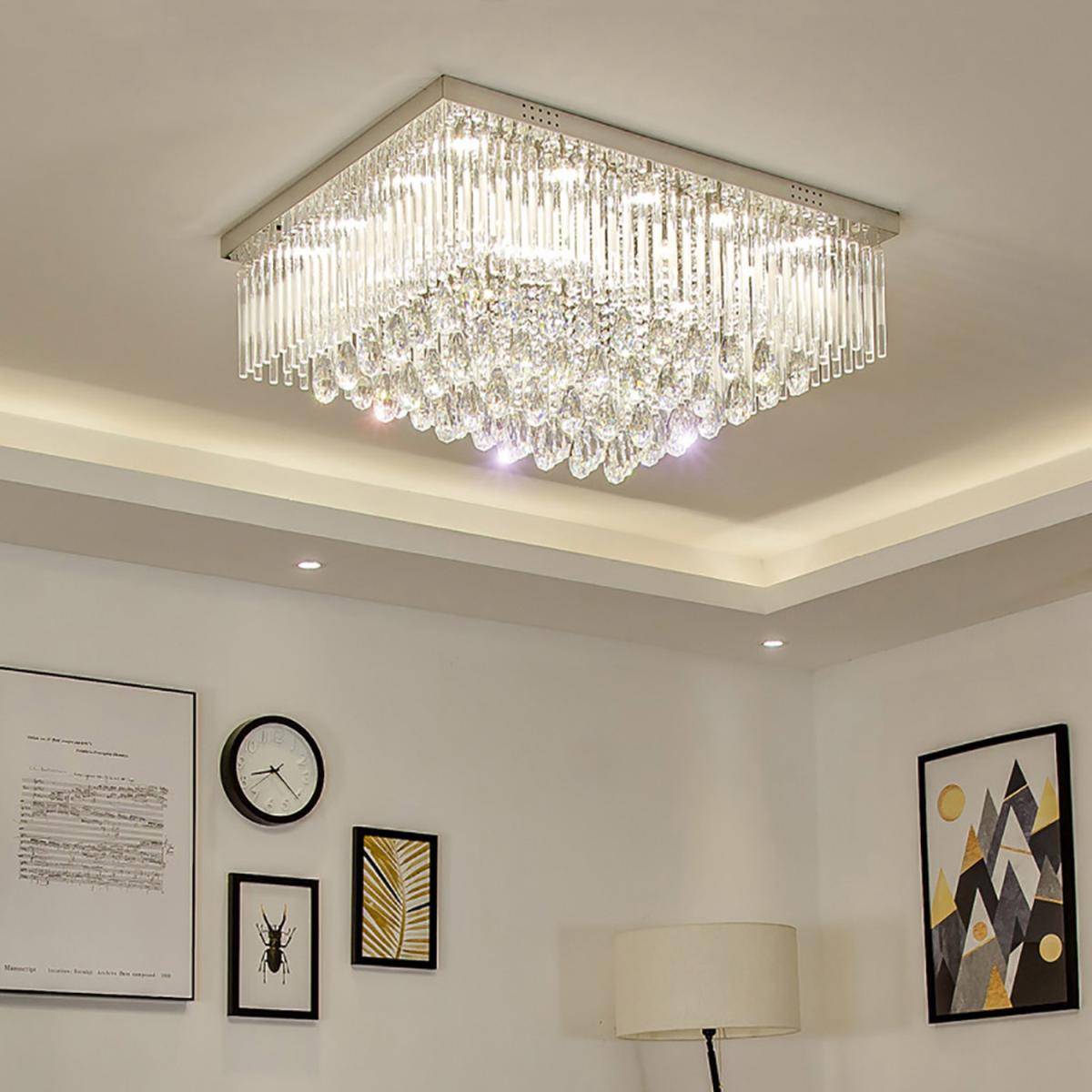 Modern Crystal LED Square or Rectangular Flush Ceiling Light Chandelier - Chrome / 27W / Rectangle