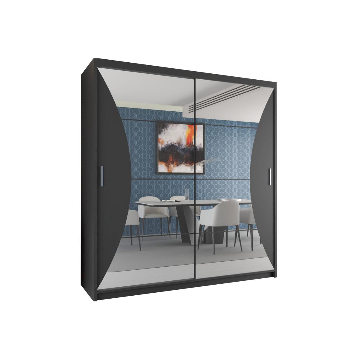 Transform your living space with the Modern Curved Mirror Sliding Wardrobe a luxurious and elegant addition crafted from durable MDF Designed to enhance any room with its beautiful aesthetic this wardrobe features soft sliding doors with a striking curved mirror available in three sophisticated colors White Black and Grey Its silver handles add a touch of refinement making your room more attractive Offered in two sizes 150cm and 203cm this space-saving bedroom cabinet provides ample storage blending modern elegance with practical functionality Specifications and Dimensions: Wardrobe 150cm includes: 2 sliding doors 5 shelves 2 hanging rails Dimensions: Width: 150 cm Height: 216 cm Depth: 62 cm Wardrobe 203cm includes: 2 sliding doors 8 shelves 4 hanging rails Dimensions: Width: 203 cm Height: 216 cm Depth: 62 cm