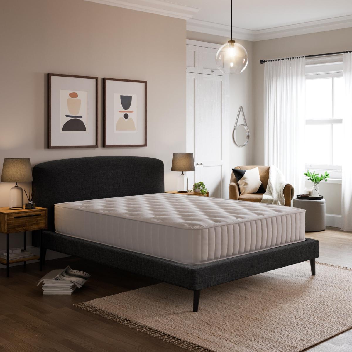 I love this bed frame for its sleek, modern silhouette and the soft curvature that adds a contemporary yet approachable feel. It works particularly well in minimalist, Scandinavian, or urban interiors where clean lines and neutral tones are key. The charcoal fabric offers versatility, providing a great backdrop for various colour schemes and texture mixing - from cosy throws and plush cushions to bold artwork. Practical styling tips include balancing the dark frame with lighter bedding for contrast, and placing a textured rug underneath to anchor the space. Its understated elegance makes it a flexible centrepiece for a calm, sophisticated bedroom.