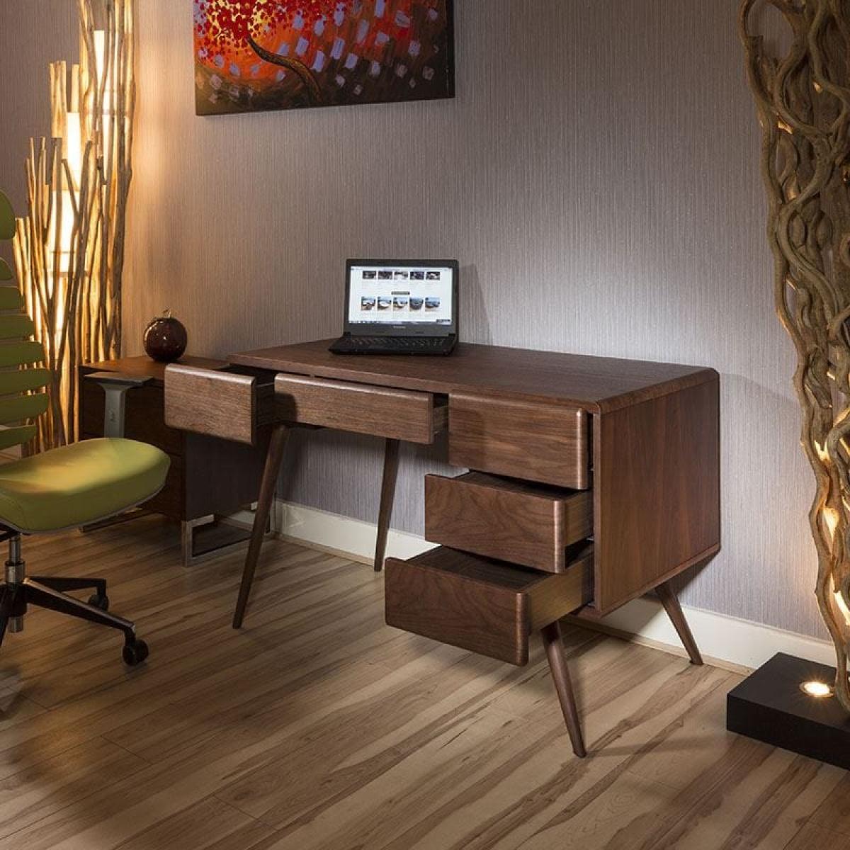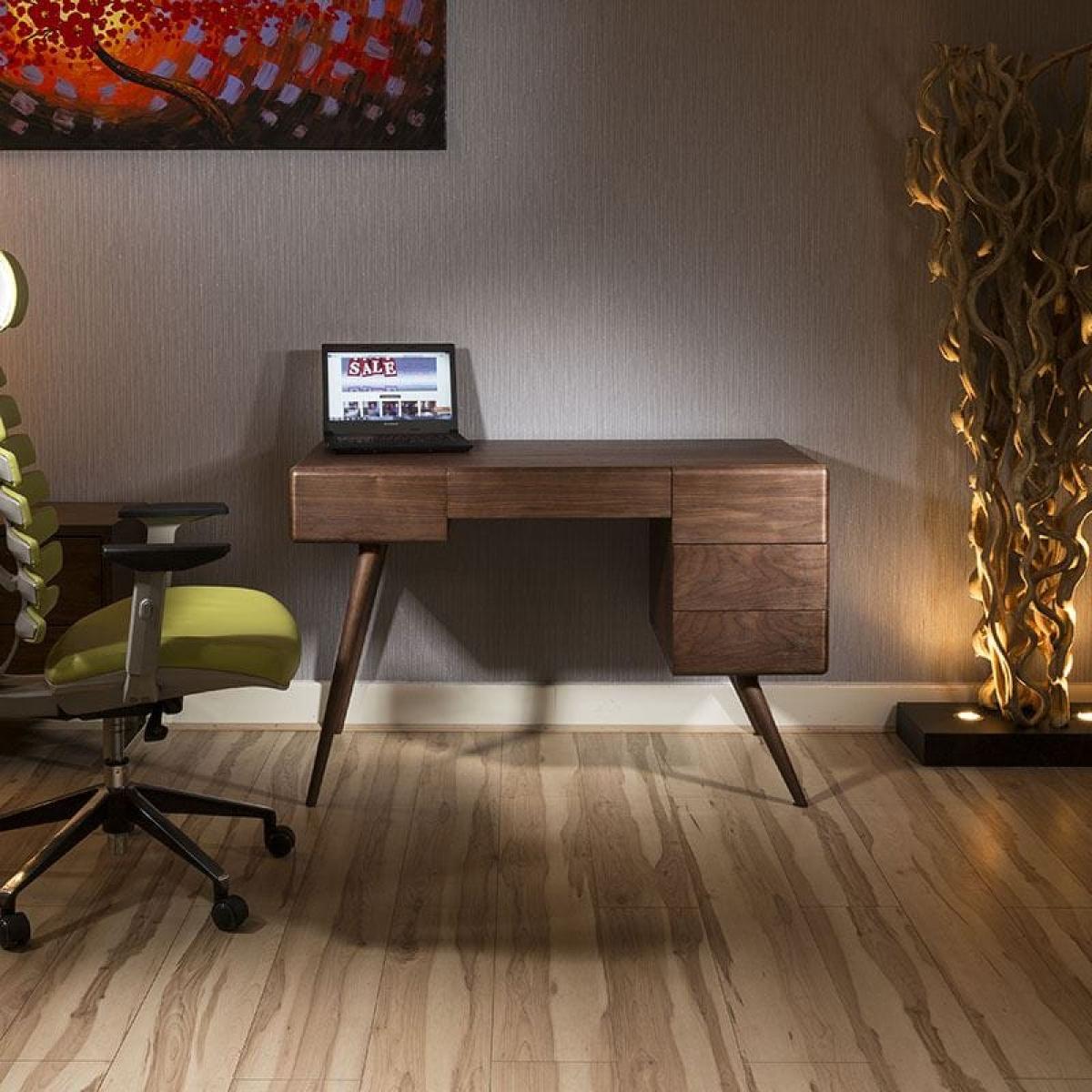 I love this desk for its sleek, modern take on mid-century design, making it a versatile piece that fits well in both contemporary and retro-inspired interiors. The tobacco walnut finish adds warmth and richness, helping it blend seamlessly into living rooms, bedrooms, or dedicated home offices. Practical styling tips include pairing it with minimalist accessories and a statement chair to highlight its clean lines, while keeping the surface clear for workspace efficiency. Its compact 120cm size is perfect for smaller spaces or as a stylish secondary workstation, and the subtle drawers provide just enough storage to keep the area organised without clutter. Overall, it’s a functional yet stylish choice for creating a sophisticated work zone at home.