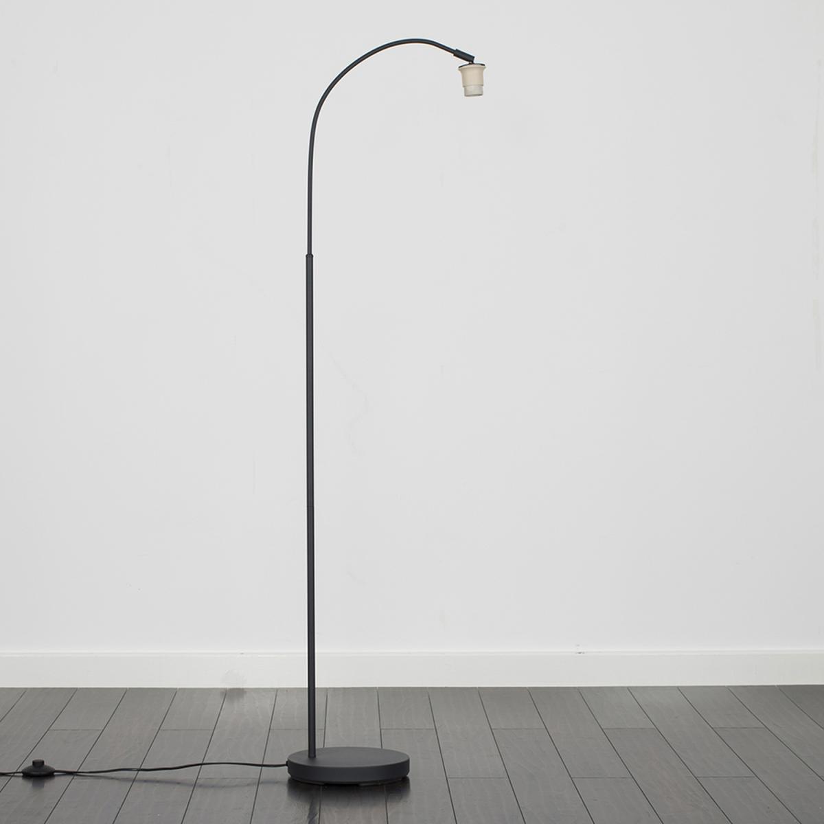 Modern designer style curved stem floor lamp base in a dark grey painted metal finish. This contemporary floor lamp base is guaranteed to make a statement in any home. As this is a lamp base only it allows you to pair it with a shade of your choice making it perfectly suited for any decor. Ideal for lounges, dining rooms, bedrooms and other living areas.