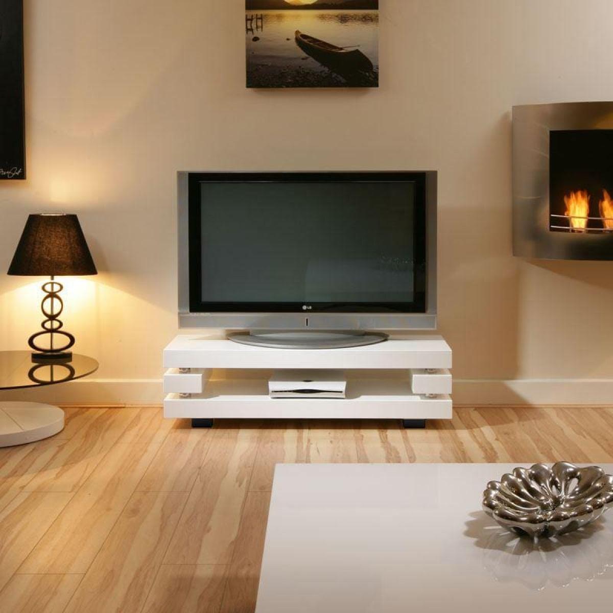 Modern Designer TV Cabinet / Stand White Gloss Stunning Quatropi 397. F, Quatropi's Smallest Tv Unit which will still take up to a 50 inch Television. Features hidden stainless supports and superb glossy finish. Superb quality and strength from this unique design. W40cm D120cm H34cm High Gloss Finish Matching Items Available