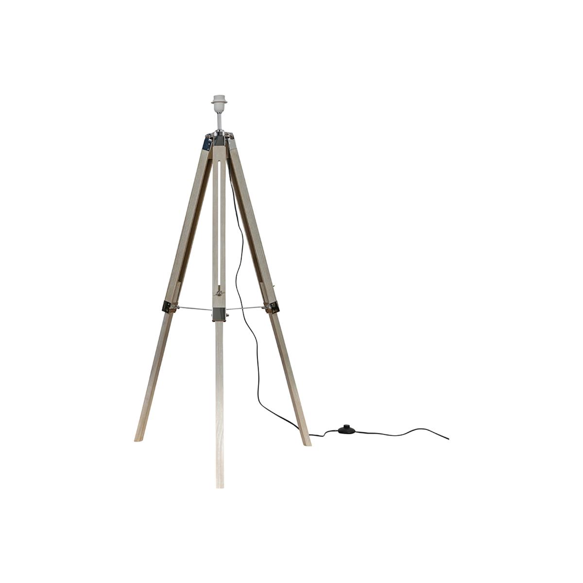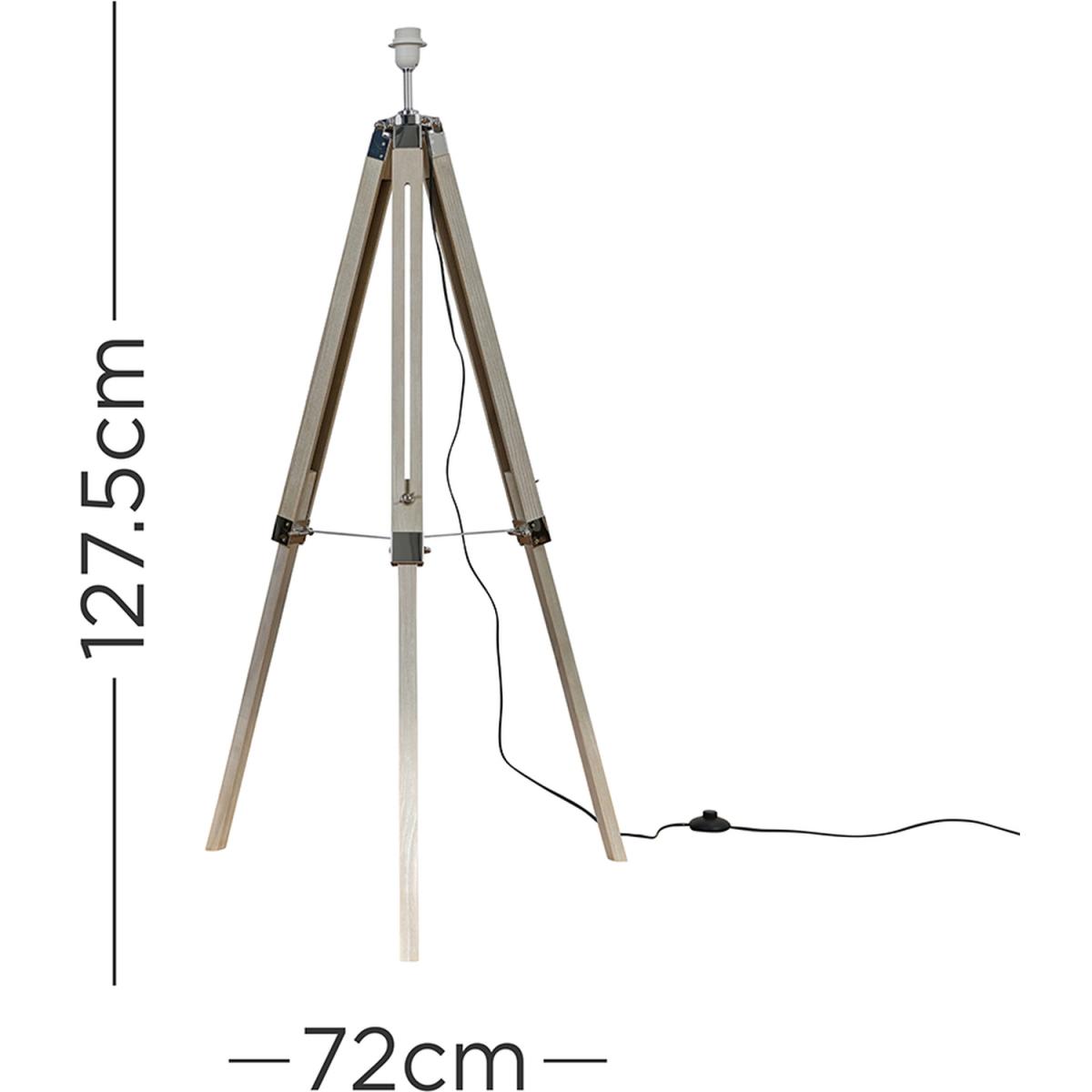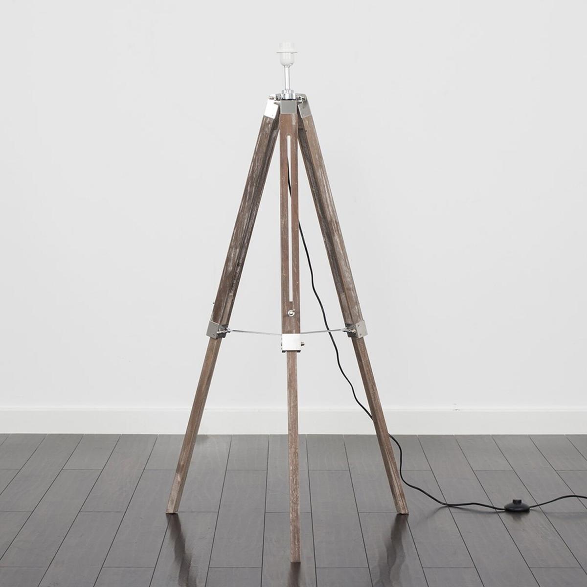 Modern tripod style floor lamp base in a distressed wood effect and silver chrome finish, which features an in-line onoff switch for easy use. Floor lamps are a great way to bring additional lighting to a room or you can use them reduce your main light output, and create a more relaxing moodatmosphere. An instant update, you can change your room style in seconds. Lamp base only - pair with a shade of your choice.