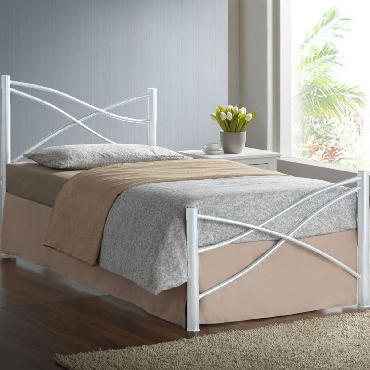 This modern elegant metal bedframe features soft sloping details in both the high headboard and foot end would suit any contemporary bedroom. This frame is supported with a sprung slatted base giving extra support and comfort and is available in finishes of white.