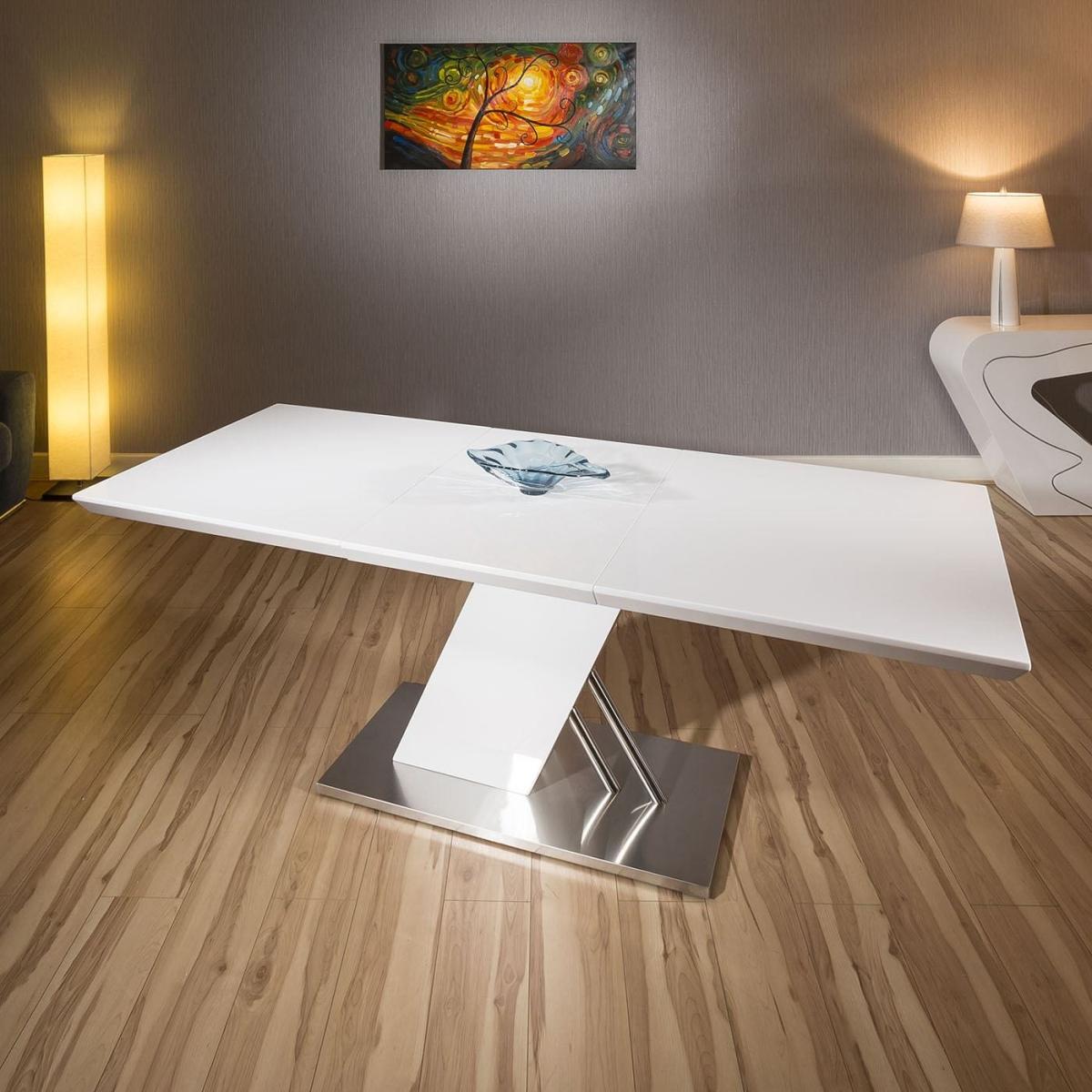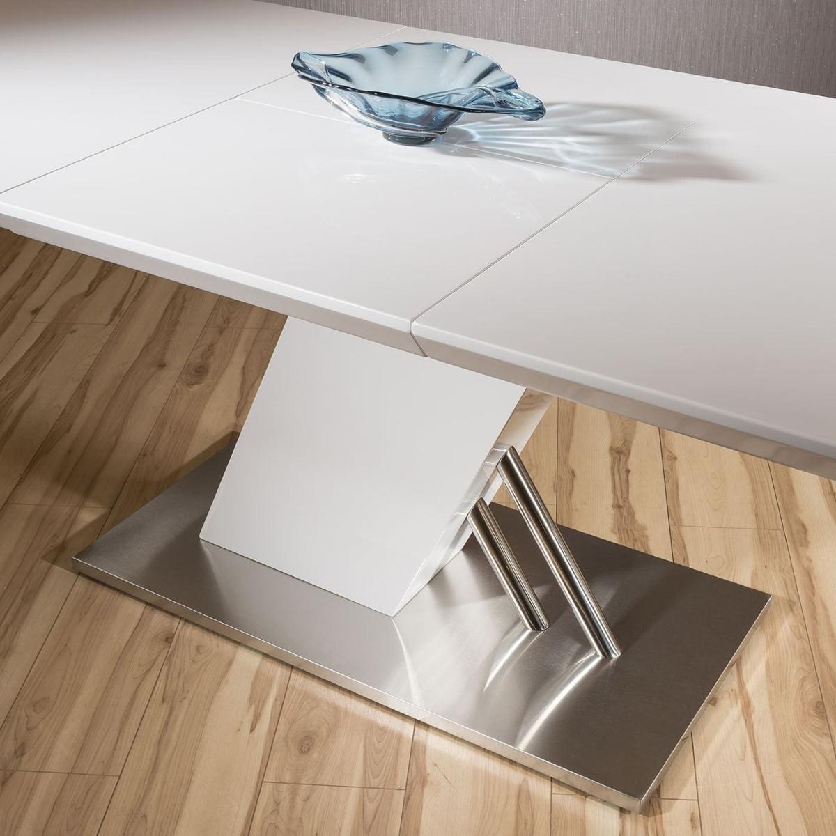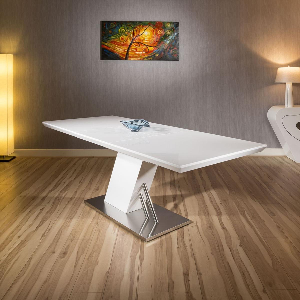 High Quality Large Rectangular Dining Table in White Gloss Finish Which extends from 1.6m upto 2.2m in length. Superb quality with high specification ultra-durable finish and brushed stainless steel base. Spread the cost our with interest-free finance options. Minimum spend applies. W220cm D90cm H76cm Modern Design Premium Quality Furniture