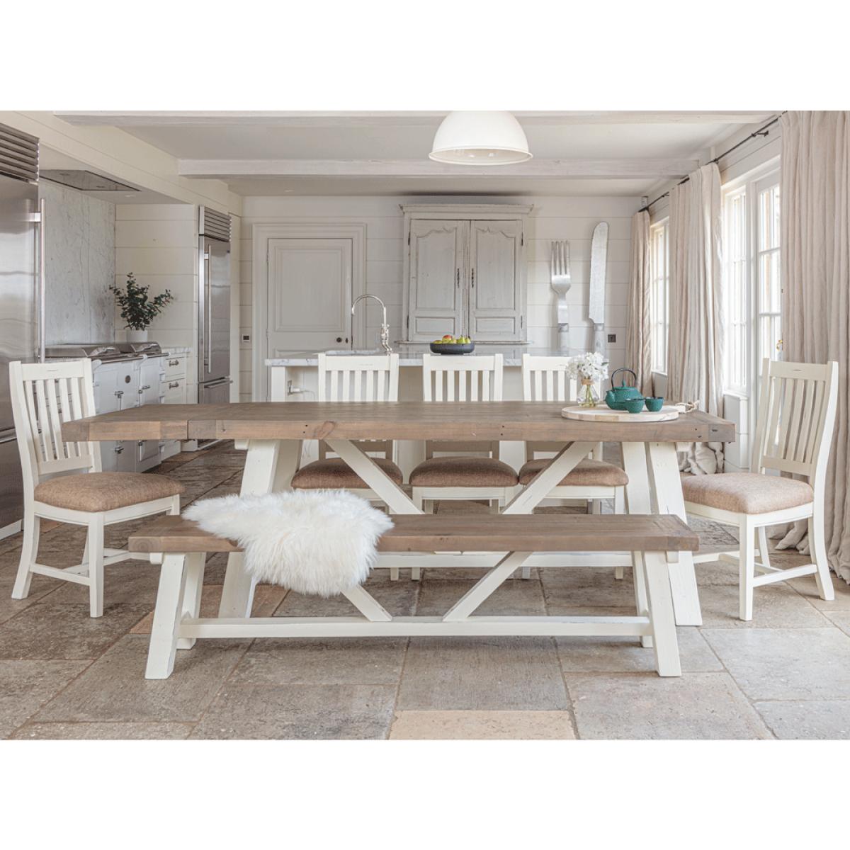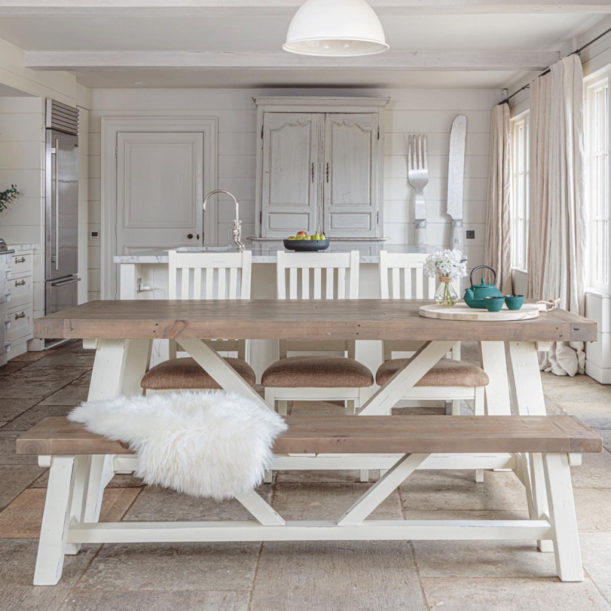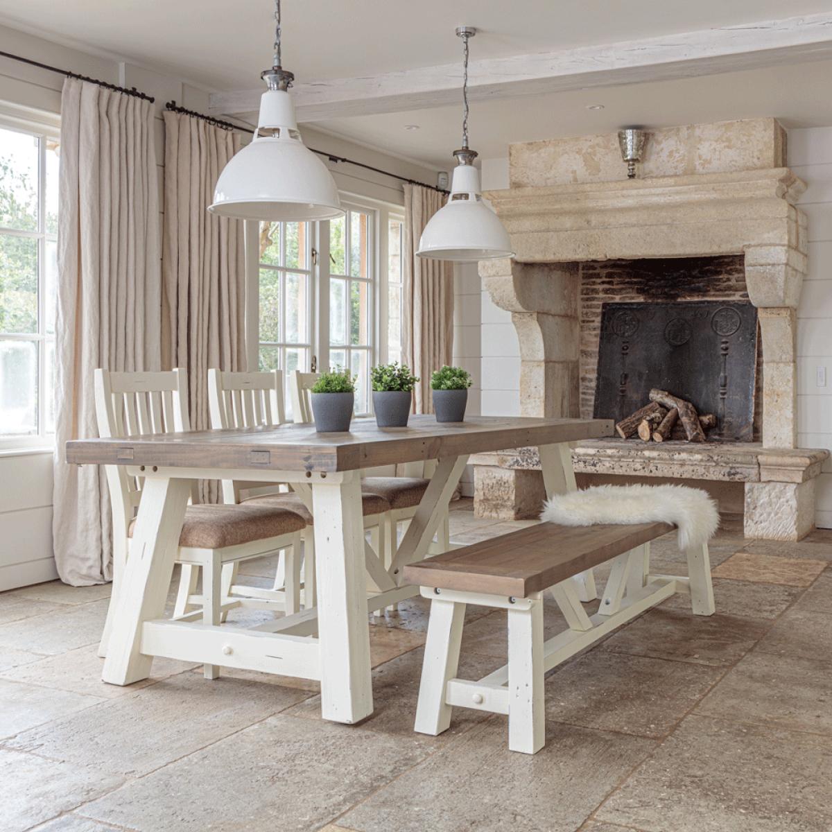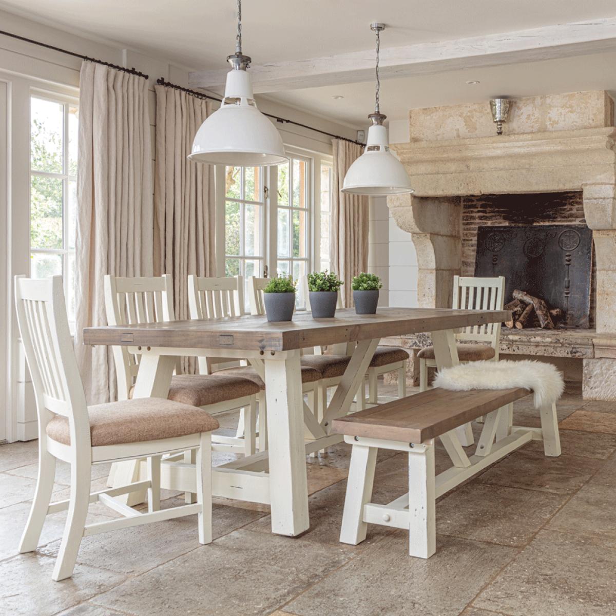 You have the option to extend this table from a 2m long table to 245cm (one extension leaf used) or 290cm (two extensions leafs used). This added flexibility is welcomed by many as it takes it from an 8 seater, to 10 and 12 seater, perfect for entertaining! Another benefit is that unlike many other extending dining tables, the extensions (. Sold separately. ) for this table adds onto the end rather than the middle, therefore not affecting the aesthetic of the table when non-extended. Central leaf extending dining tables, by their very nature, have a join running down the middle of the table’s top, which you don’t have on this set. To extend this table you simply slot in one or both of the extending leaves into the channels at either end and fasten underneath to secure. Discount available if purchased as part of a dining set. Why not check out some of the other products available in the. Modern Farmhouse Range.