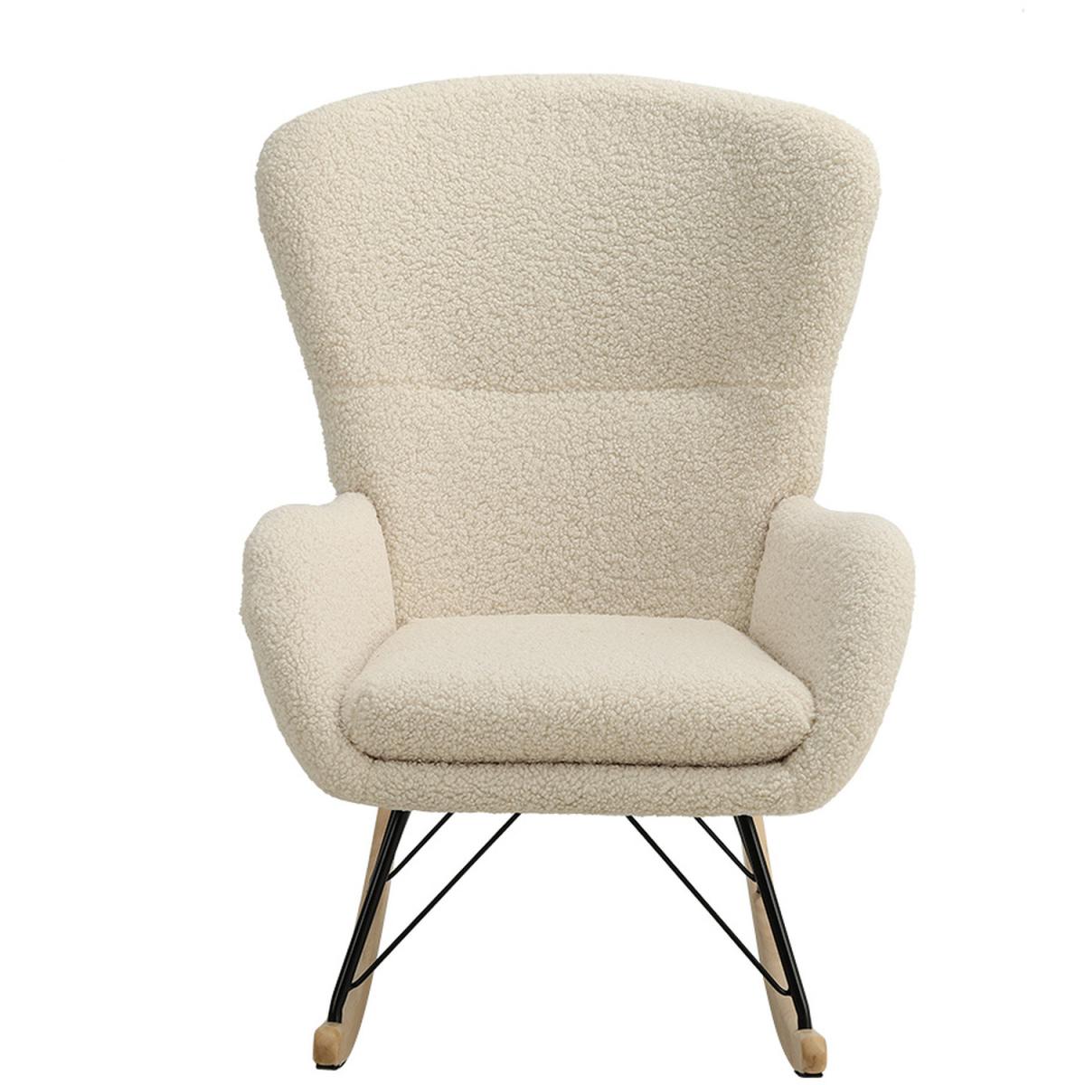 Modern Faux Wool Rocking Chair with Removable Cushion - White