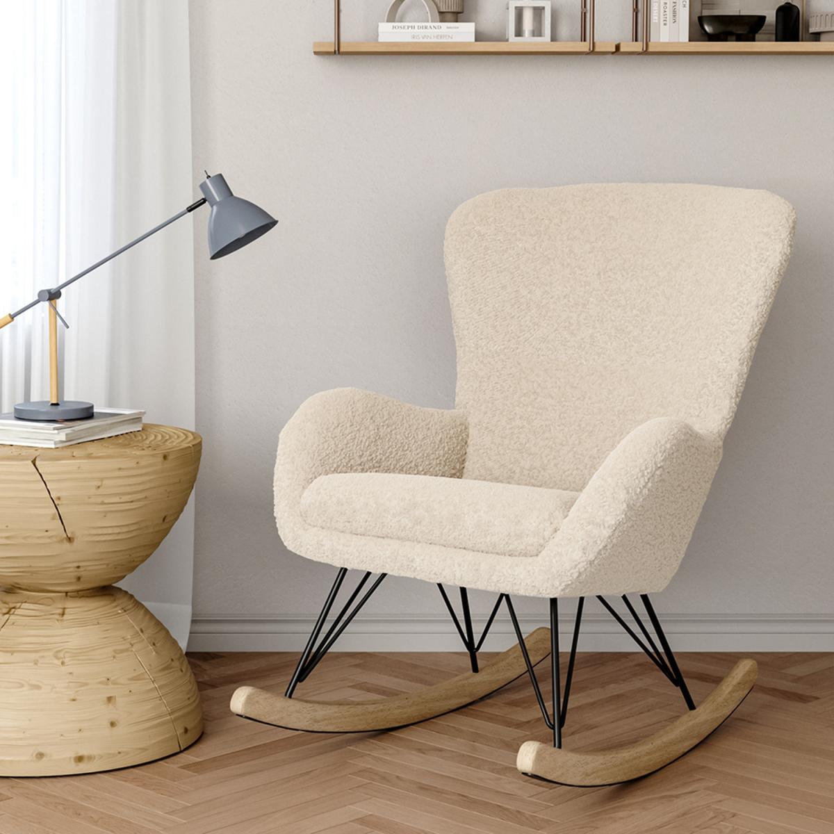 Bring this chic rocking chair from Livingandhome to your home, you'll be delighted to see how the chair perfectly integrates with your existing decoration. It adopts an ergonomic design, providing sufficient support while you are rocking. The faux fur fabric is so cozy that sitting on this chair would make you want to fall asleep. The design of solid wood runners with rubber mats can offer a silent and floor-friendly experience. Built with low armrests on both sides, the chair allows you to fully relax.