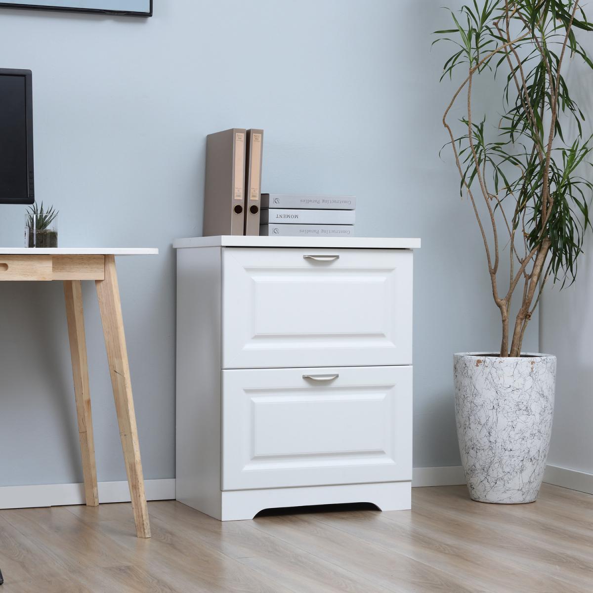 Modern Filing Cabinet with 2 Drawers and Handle - White