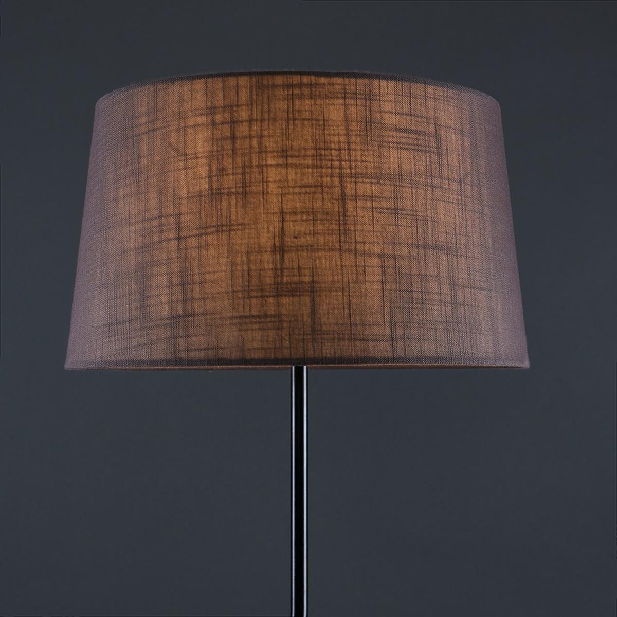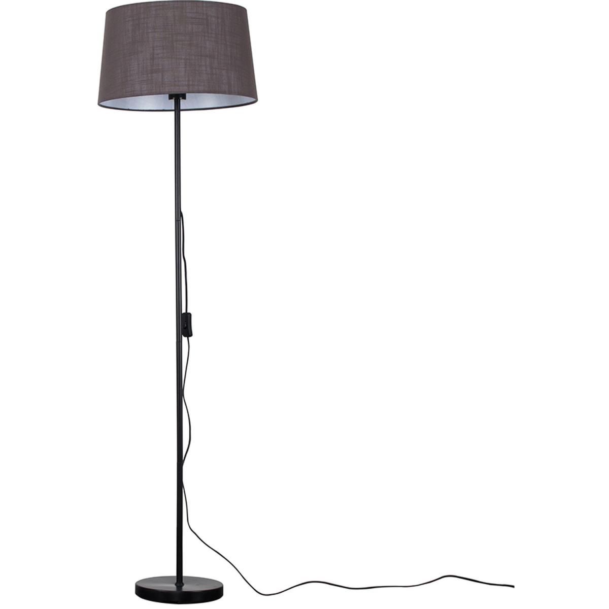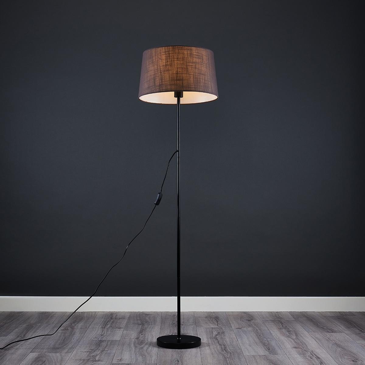 Modern Floor Lamp In Black Metal Finish With Faux Linen Dark Grey Shade - Grey