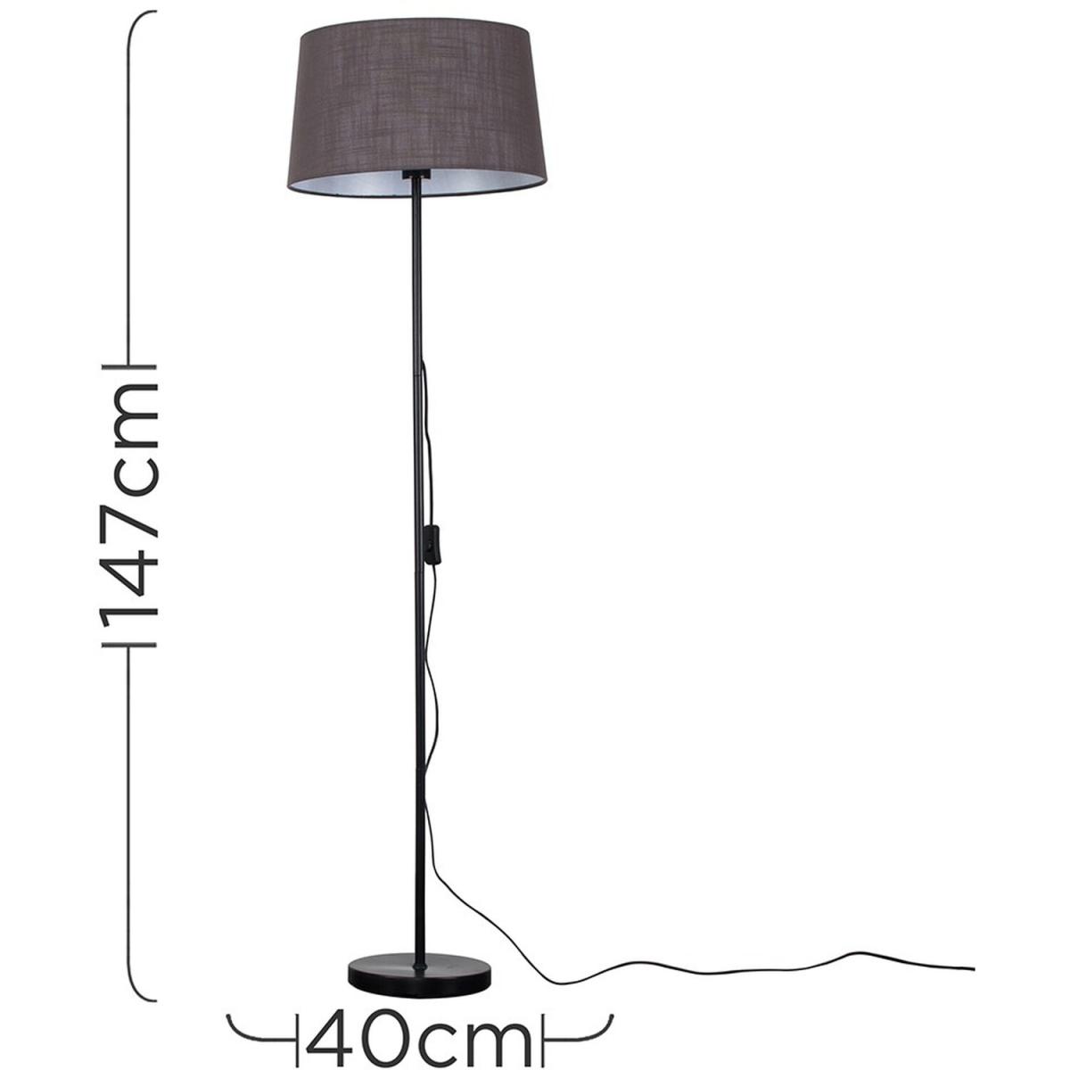 Modern standard tall stem floor lamp in a black metal finish, complete with a tapered shade in a dark grey faux linen fabric finish. This contemporary floor lamp is guaranteed to make a statement in any home. Floor lamps are a great way to bring additional lighting to a room - perfect for hallways, bedrooms, lounges, living rooms and offices.