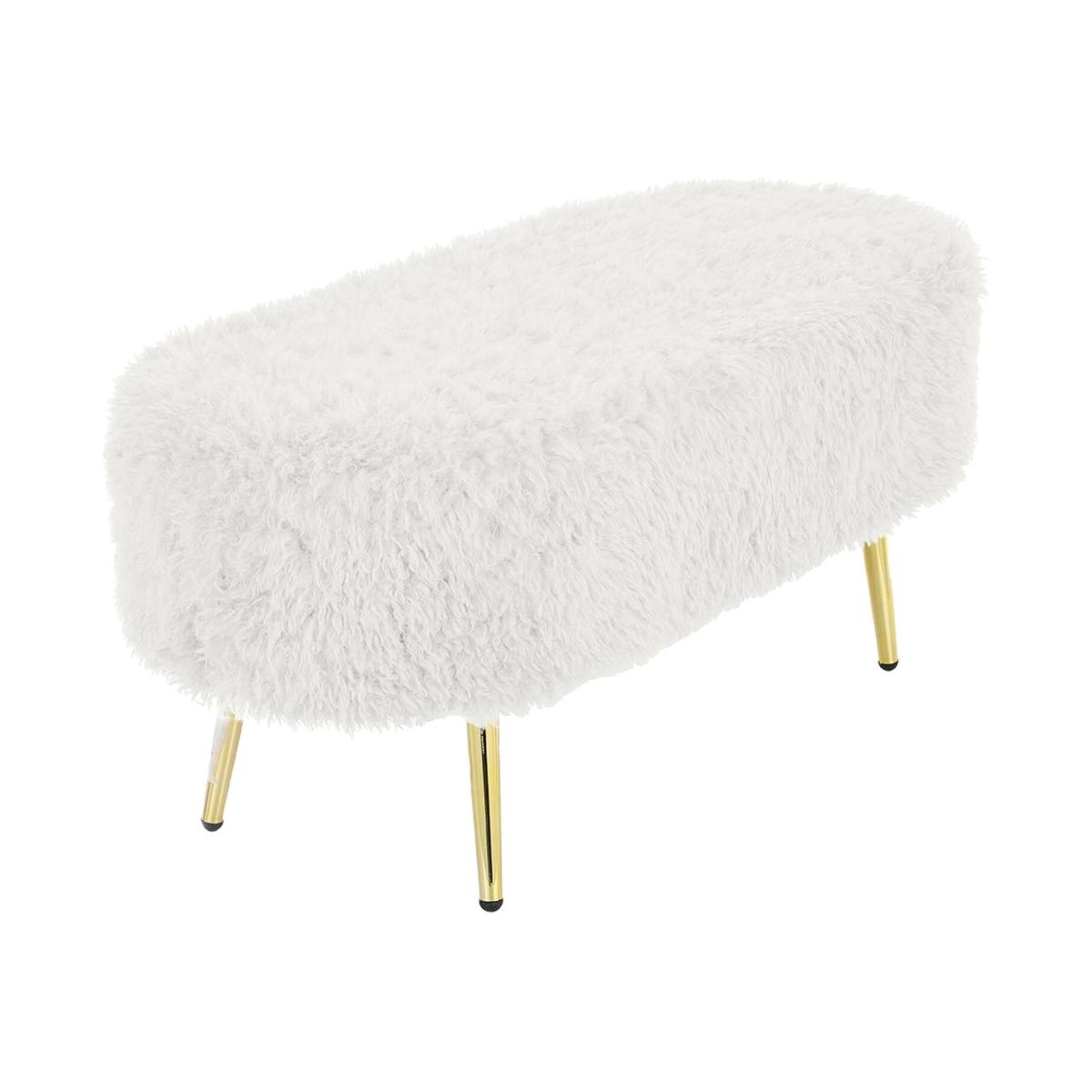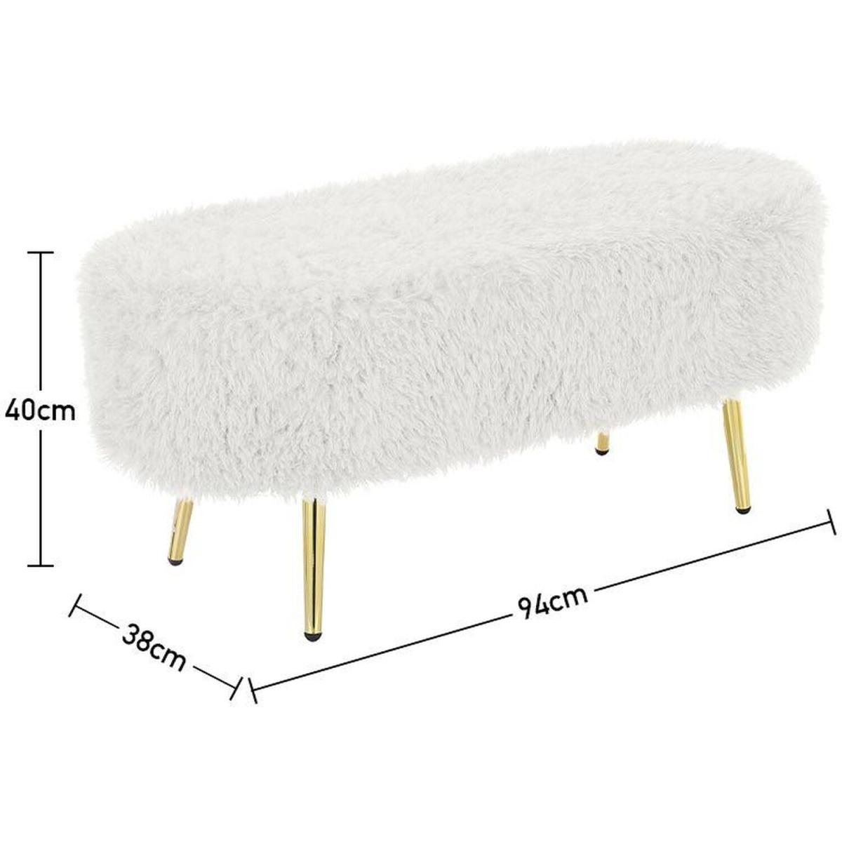 Modern Fluffy Bench Pouffe Stool - White