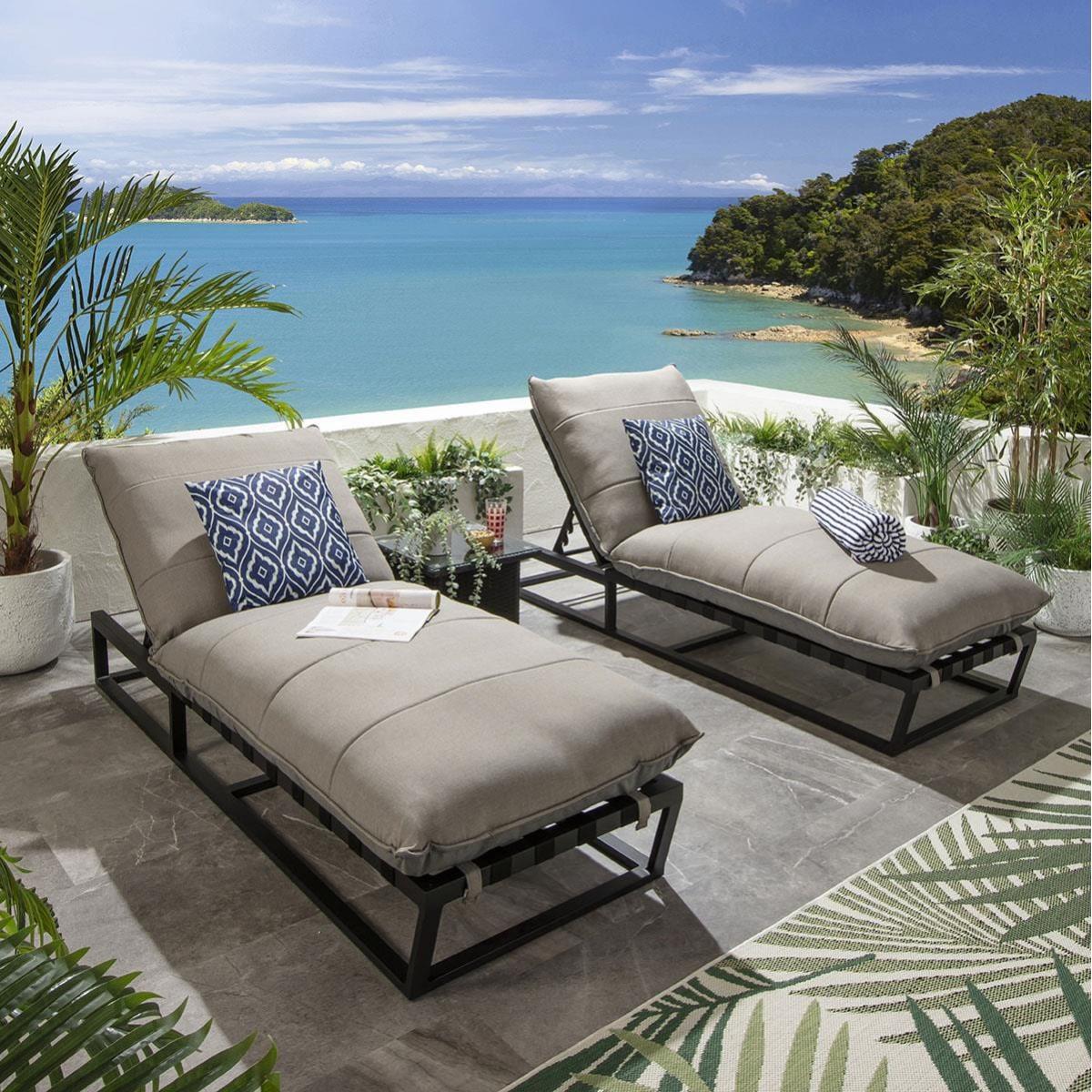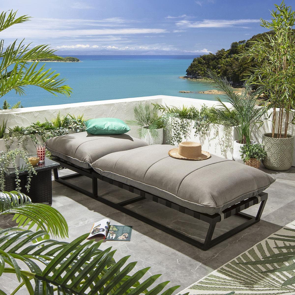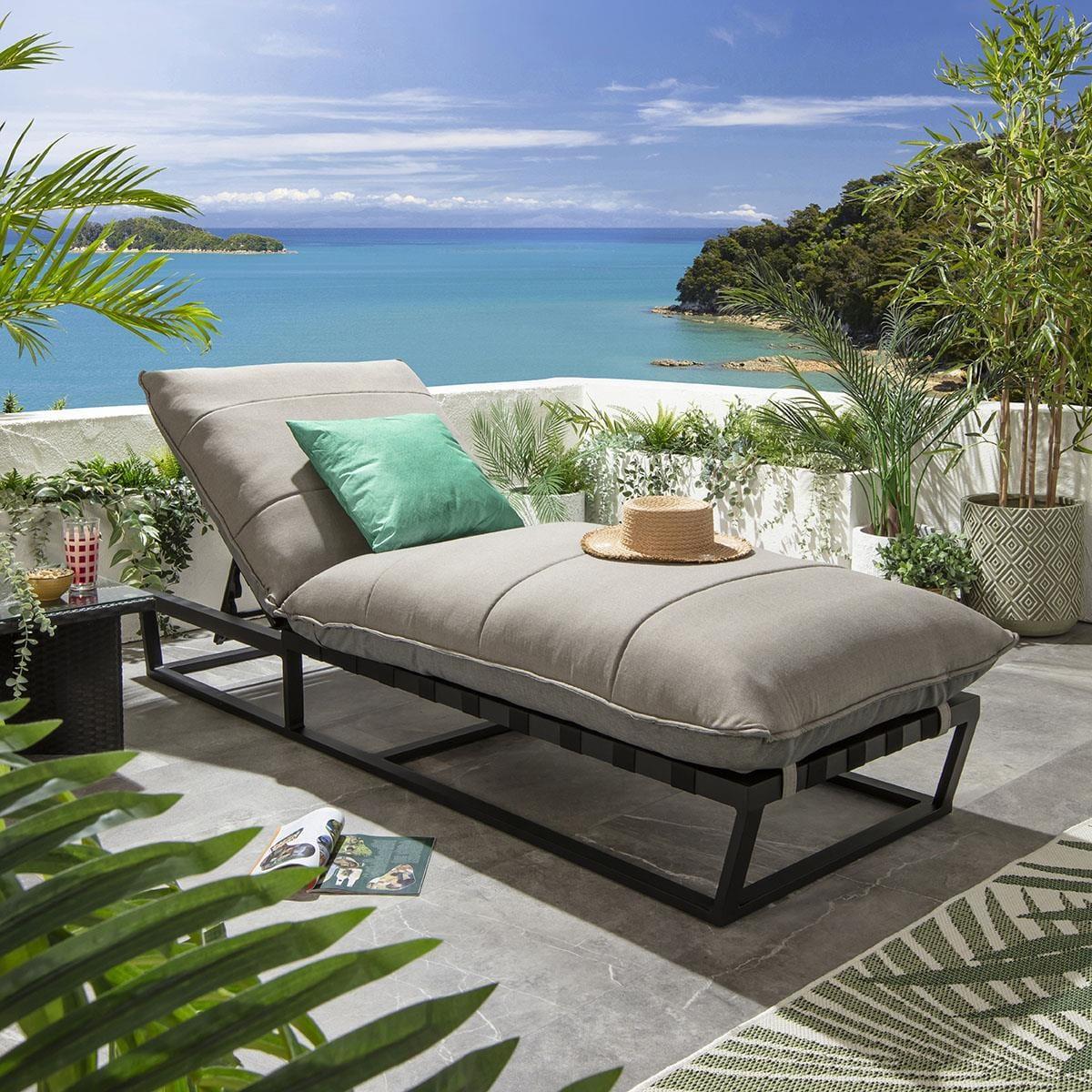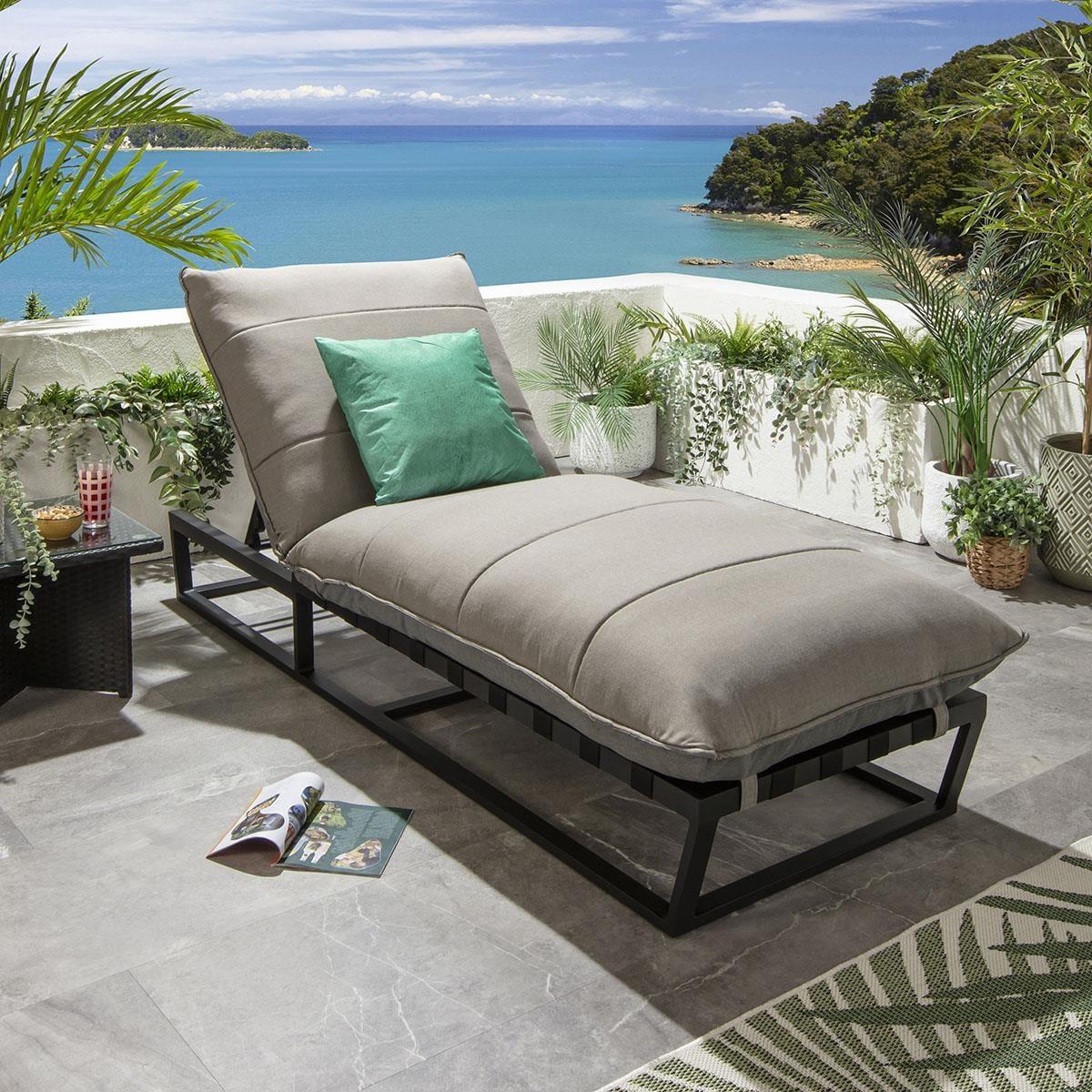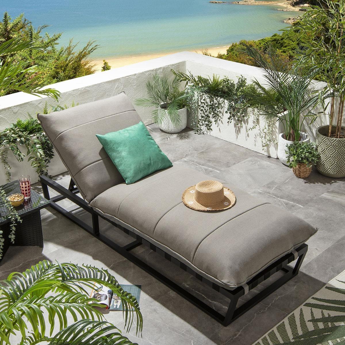 Experience luxury with the Ocean garden lounger. Sink into soft, thick cushions made from beige Sunbrella marine fabric. Whether reading a book or soaking up the sun, this cushioned sun lounger is perfect for any outdoor setting. Supported by a weatherproof aluminium frame, enjoy this sun lounger season after season. The Ocean garden lounger is built to last with frames made from weather-proof aluminum. You won't have to worry about rusting or corrosion, even if it's left outside in the elements. The aluminum frame is also lightweight, making it easy to move the lounger around your garden or patio. Covered in premium Sunbrella fabric, this cushioned sun lounger is designed to withstand the elements. Whether it's hot sun, heavy rain or even snow, the premium Sunbrella fabric will hold up to any weather conditions. The modern elegant beige colour of the lounger will complement any outdoor decor, making it a great addition to your garden or patio. With an adjustable back, you can find the perfect angle for lounging in the sun or reading a book. Whether you prefer a fully reclined position or a more upright angle, the adjustable back makes it easy to find the perfect position for your comfort. The lounger is also mold and mildew resistant, so you won't have to worry about any nasty surprises when you go to use it. It's even bleach cleanable, making it easy to keep the lounger looking as good as new. W212cm D84cm H38cm Sunbrella marine fabric Full aluminium frame