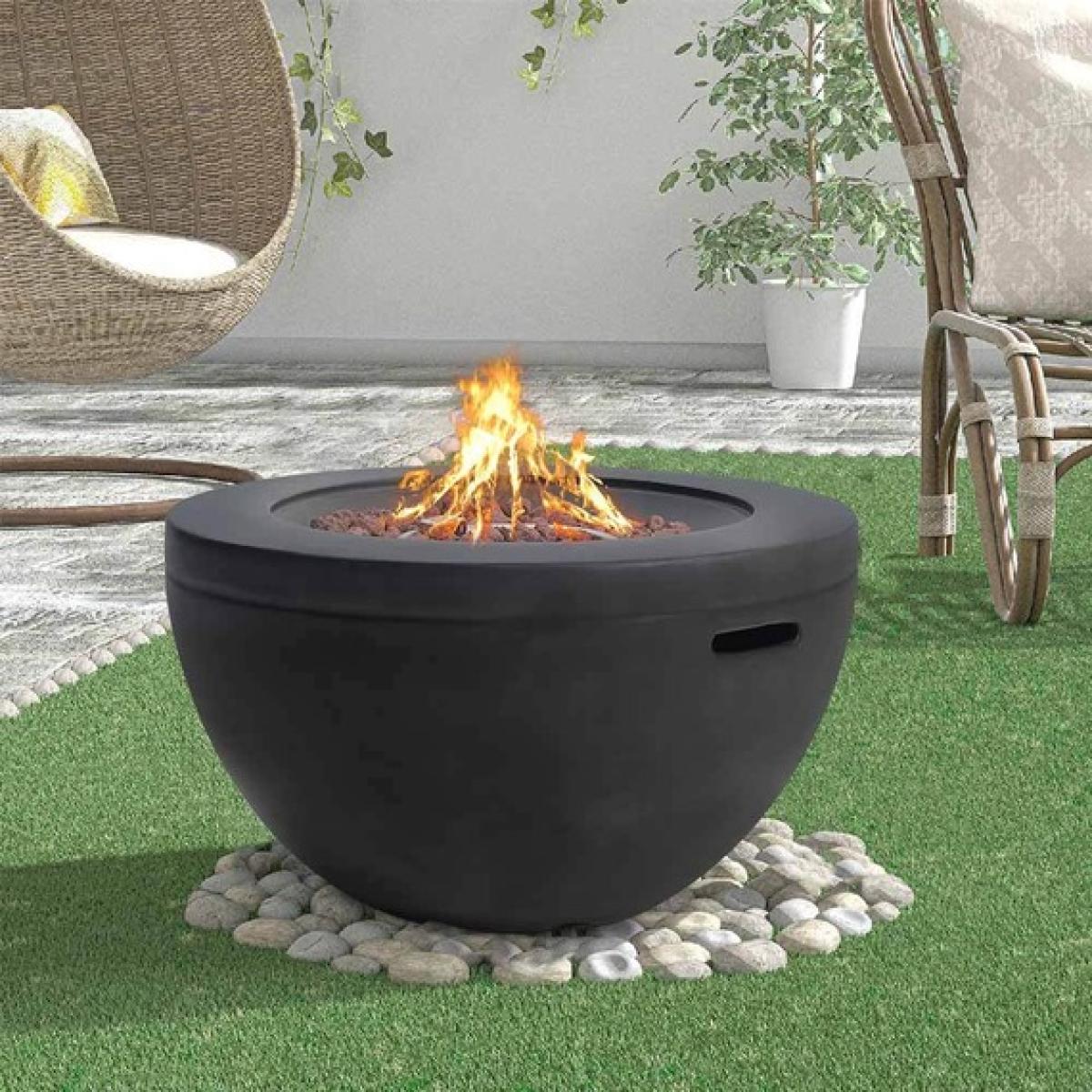 The black round firepit offers a sleek, contemporary focal point perfect for both modern and minimalistic outdoor spaces. I love how its stainless steel burner with lava rock adds a sophisticated touch while providing a cosy atmosphere, especially in evening gatherings. It works well in neutral-toned gardens or patios, but can also be styled alongside natural textures like timber furniture or greenery for a more relaxed vibe. Practical styling tips include placing it on a stable, heat-resistant surface-like the pebbles shown-and surrounding it with comfortable outdoor seating to create an inviting lounge area. Pairing it with textured cushions or lanterns can enhance its contemporary appeal while ensuring it remains a practical feature for enjoying chilly evenings outside.