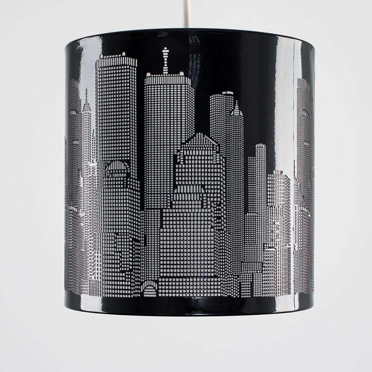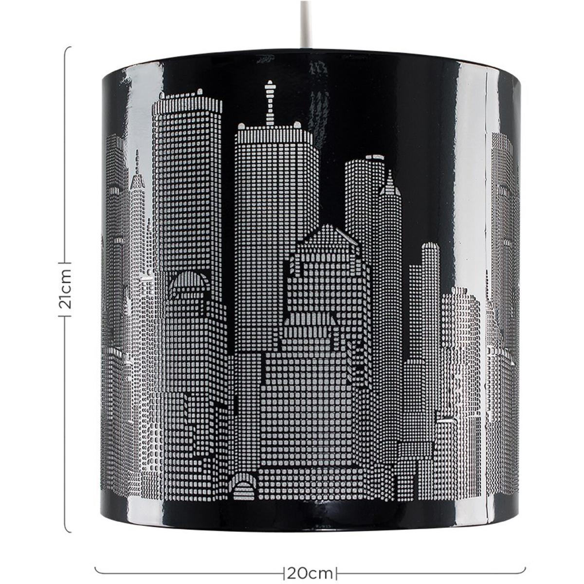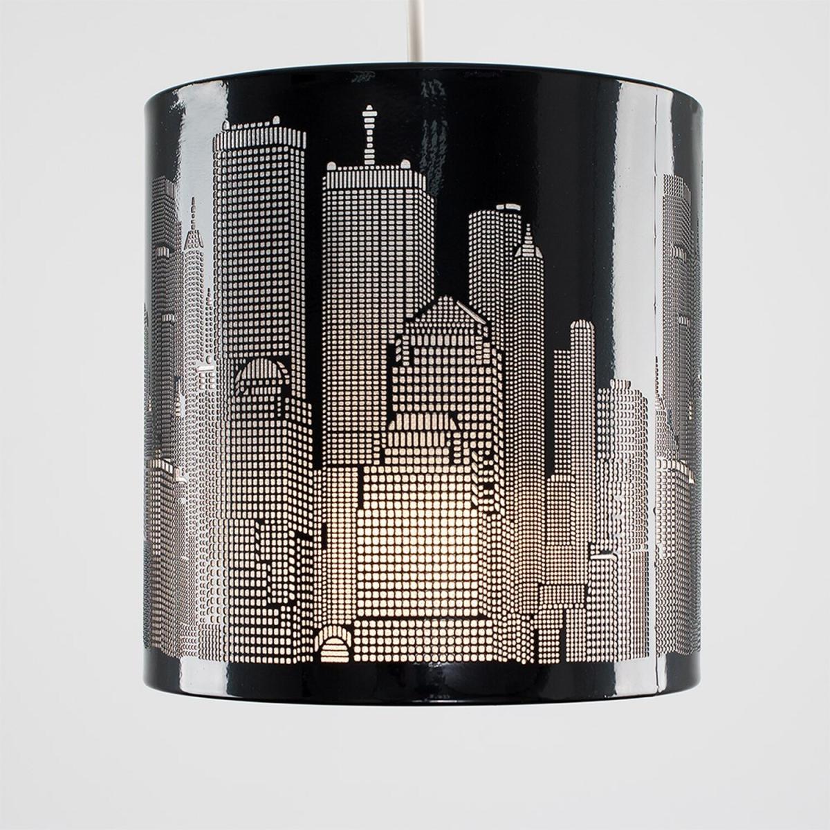 The beautiful New York skyline cut-out design shade in a gloss black finish lights up beautifully when the light is switched on. This shade easily fits to your existing light fitting in matter of seconds - no electical installation required. Ceiling lights are usually the main source of illuminating a room but with the many styles on offer today, also become a main focal point or talking point. The right fitting can make a real style statement and complete your living space look. The ideal bulb to use with this item is a 60w BC (bayonet cap) GLS bulb - not supplied. Please Note This lamp requires dimmable bulbs. Not suitable for standard LED or energy saving bulbs.