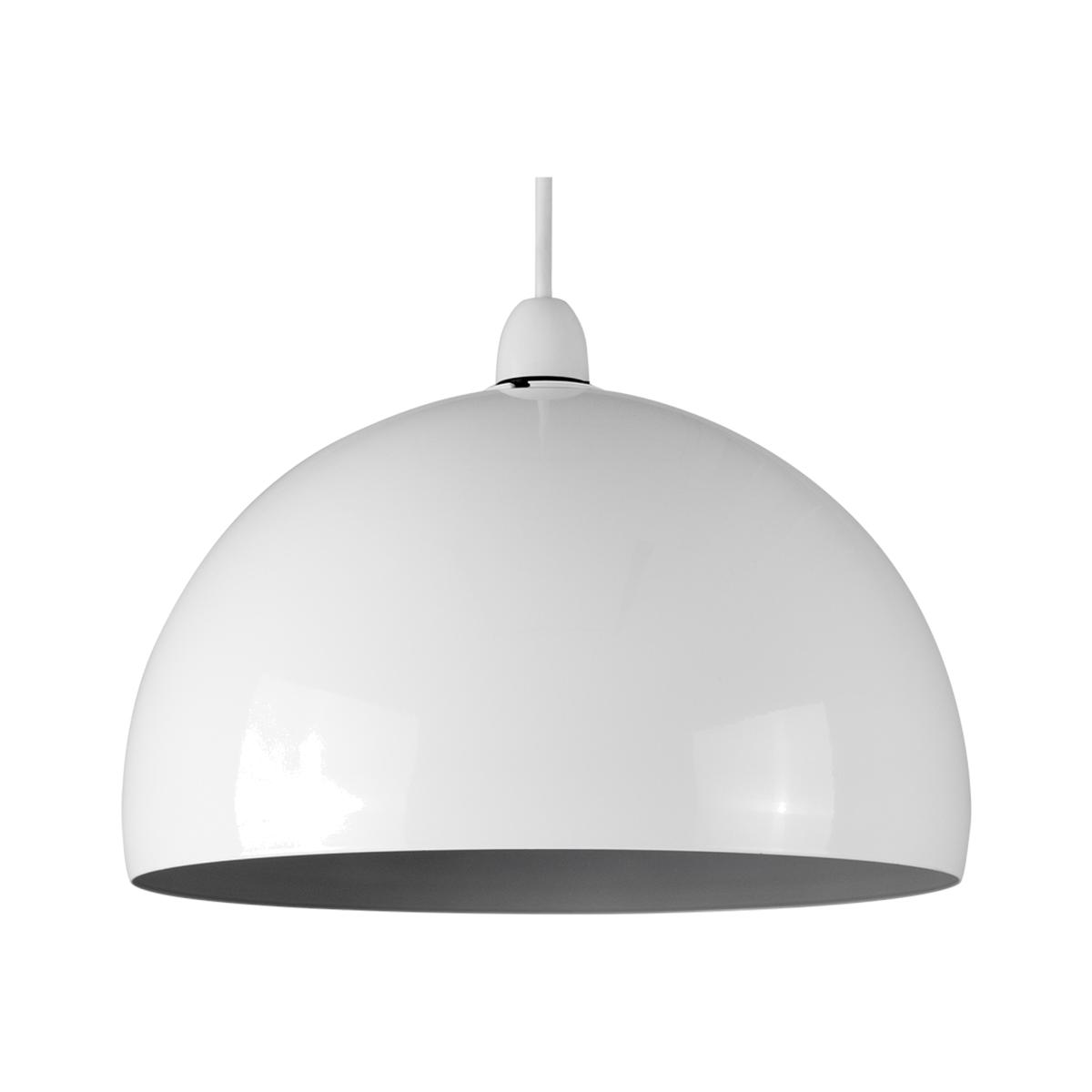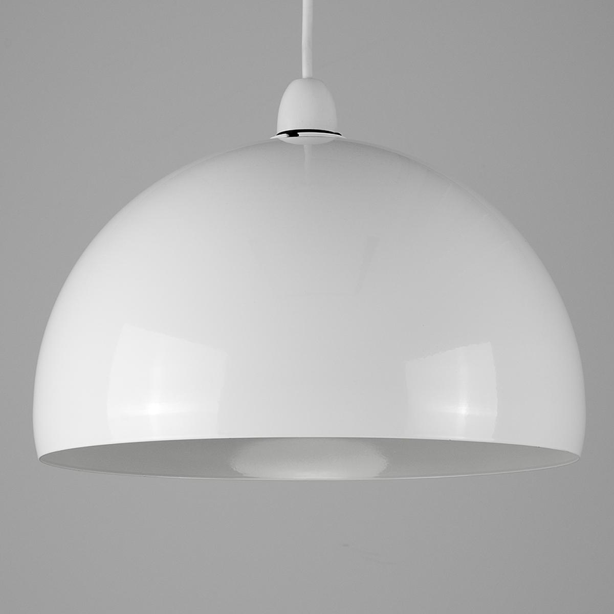 Modern arco dome shaped ceiling pendant light shade in durable gloss white and grey metal finish. Easy to fit to your existing lampholder - no electrical installation required. This contemporary shade has a real retro feel. The simple design of this product helps to create a fresh and less cluttered feel in a room. The ideal bulb to use with this product is a 60w BC B22 GLS bulb - not supplied.