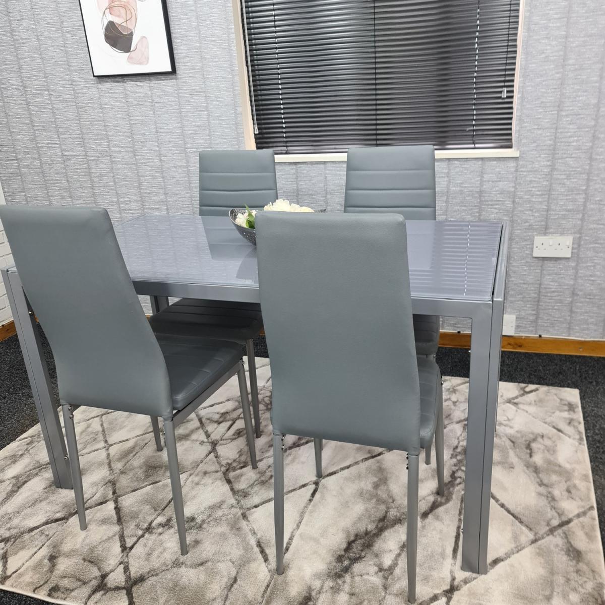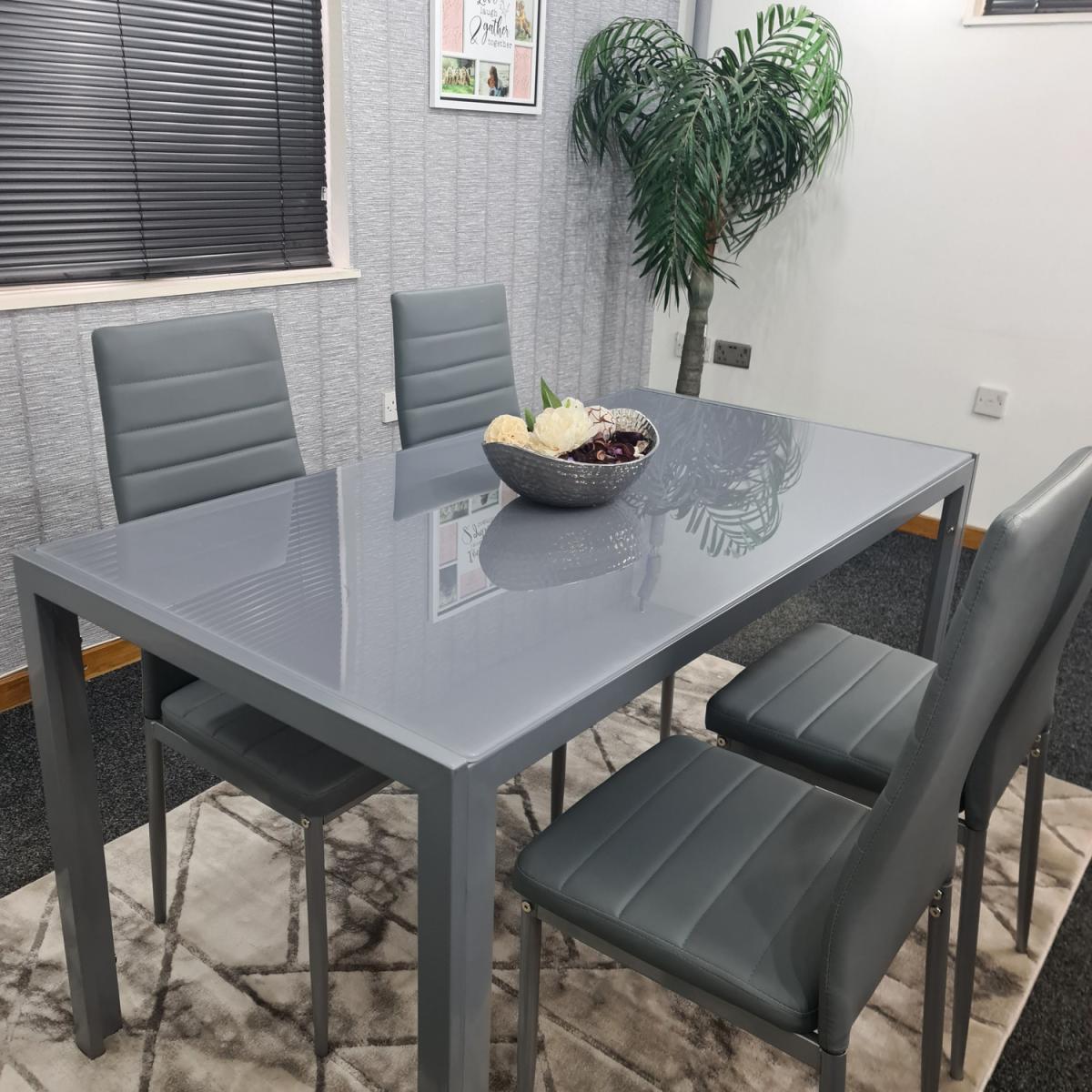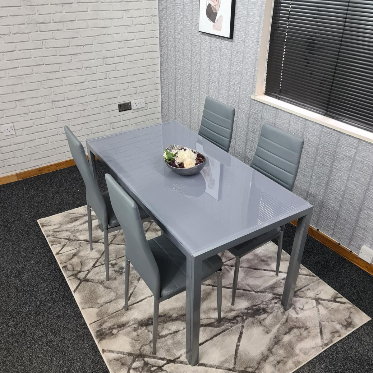 Modern Grey Glass Dining Table And 4 Grey Chairs Set - Grey