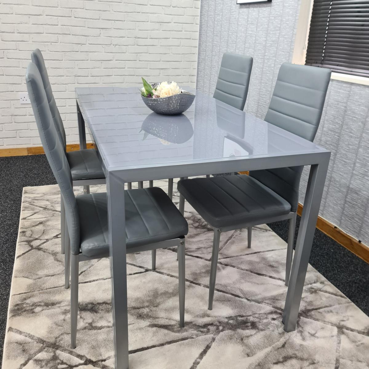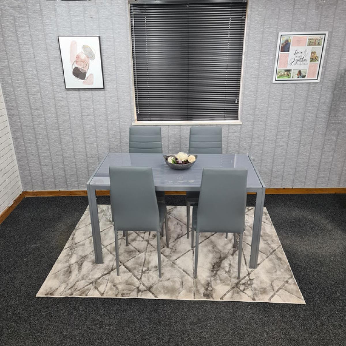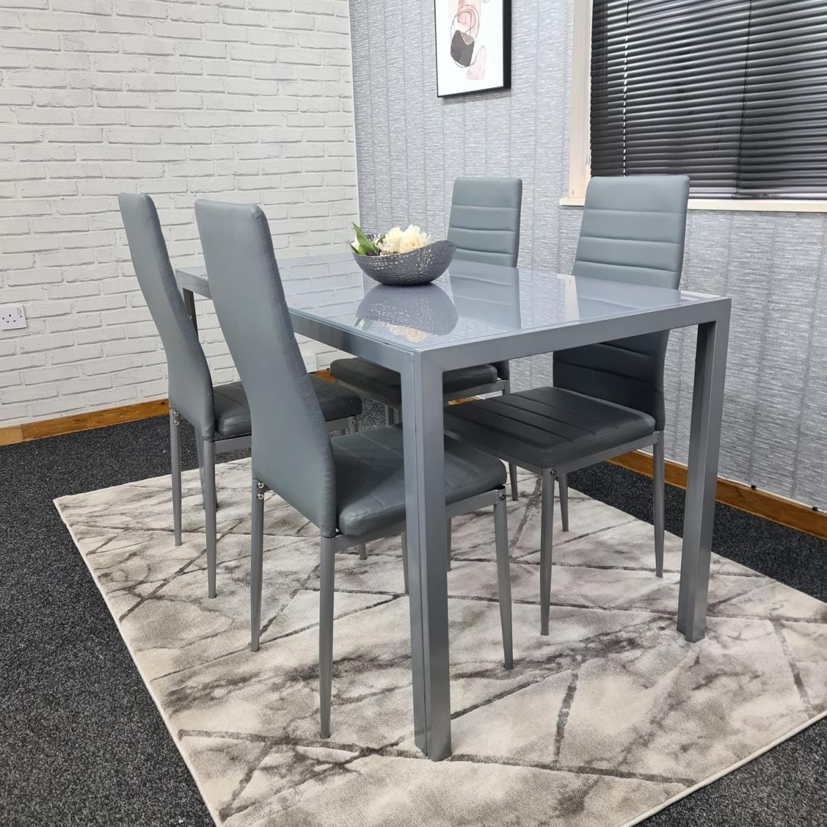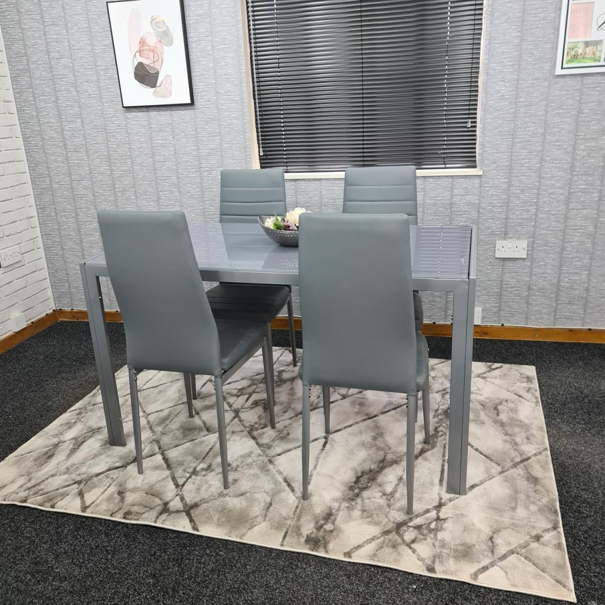 Modern Grey Glass Dining Table And 4 Grey Chairs Set - Grey
