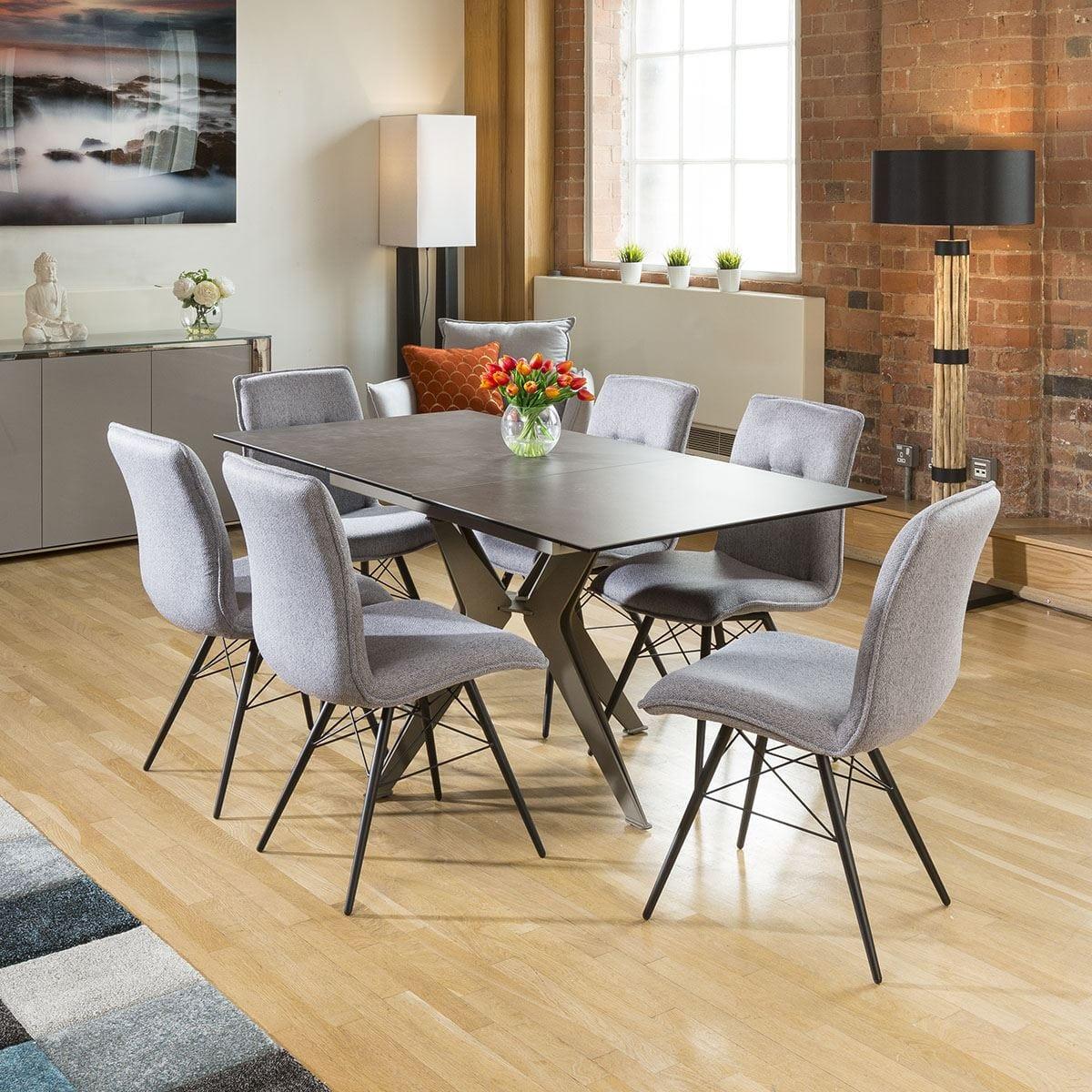 Modern Grey Italian Ceramic Dining Table Rectangle Extends 1.3 - 1.7m