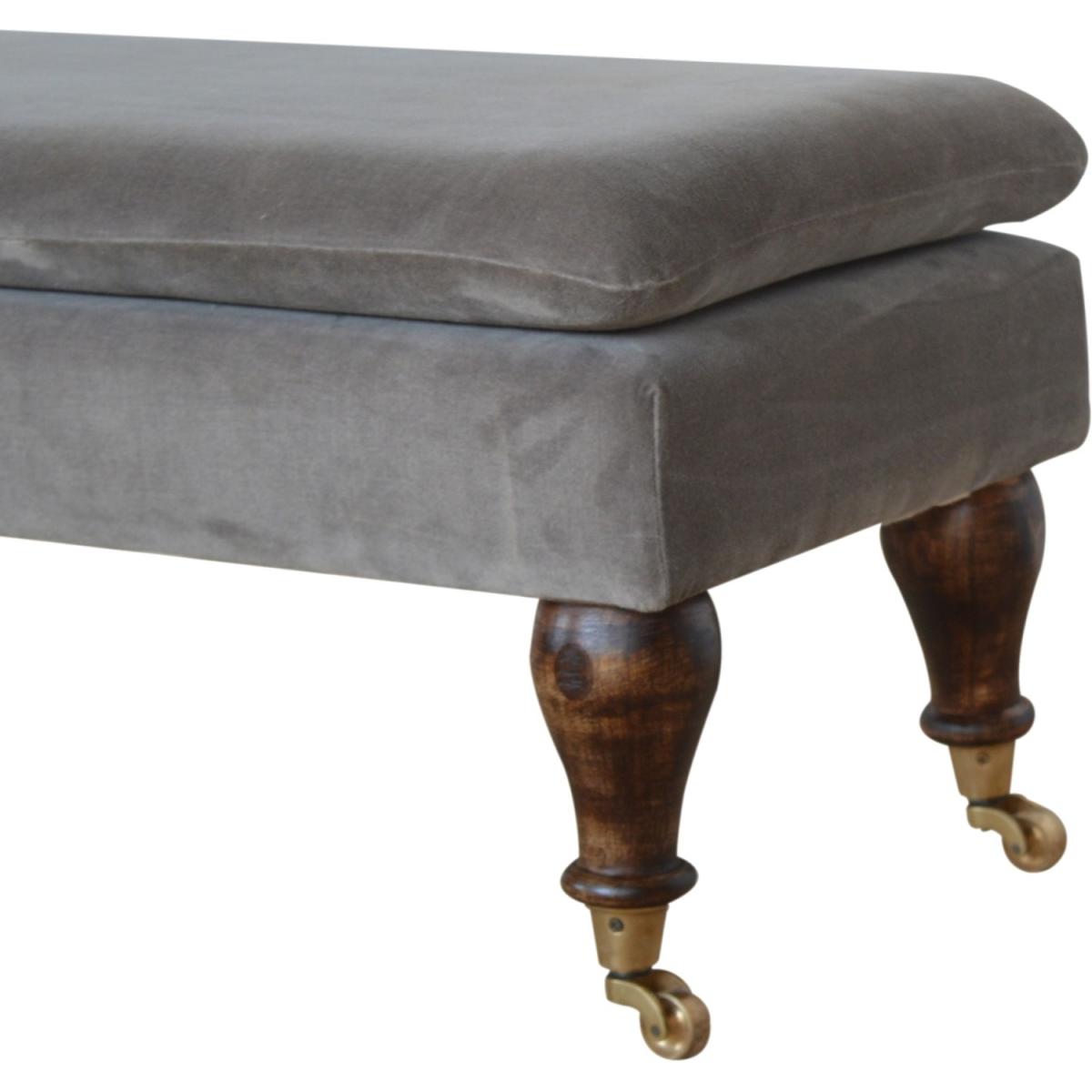 Modern Hand Crafted Grey Velvet Bench with Castor Feet - Brown