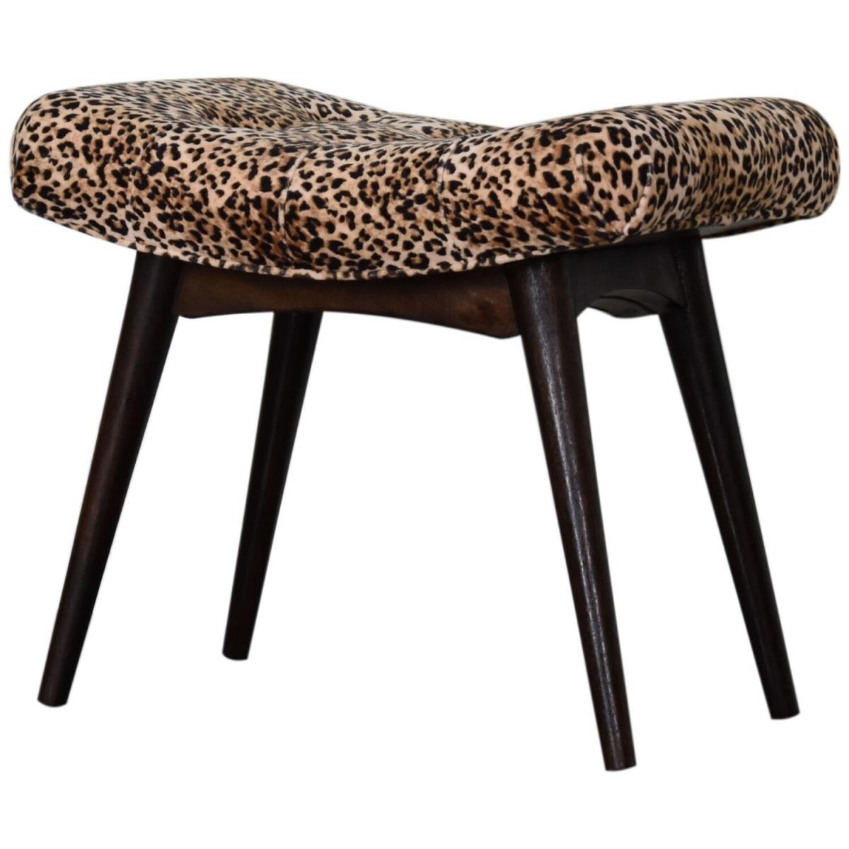 Modern Hand Crafted Leopard Print Curved Bench - Brown