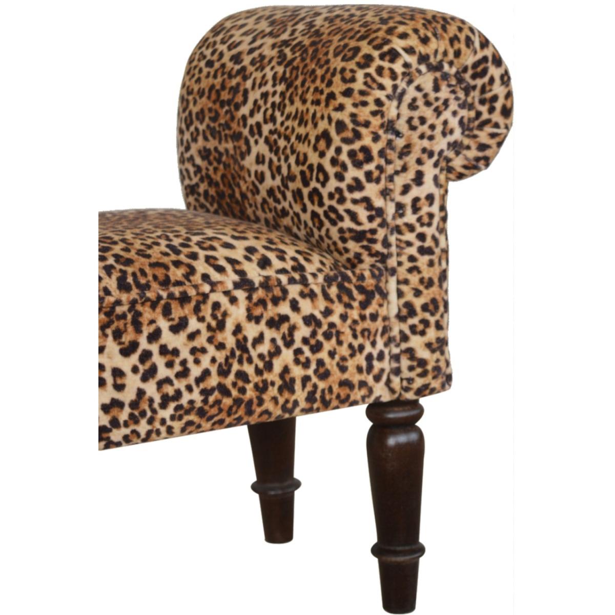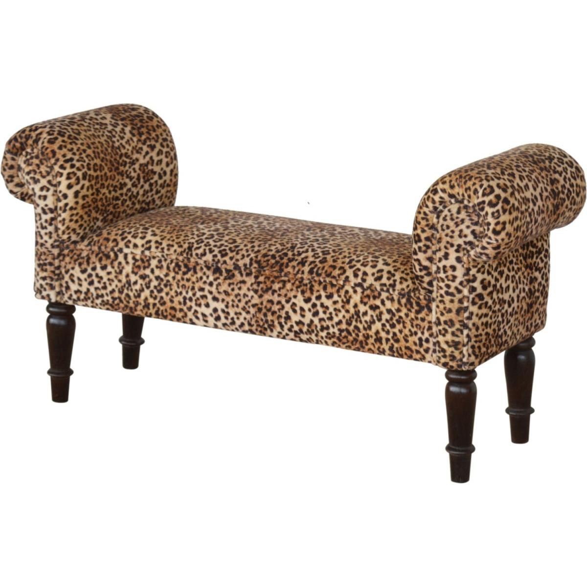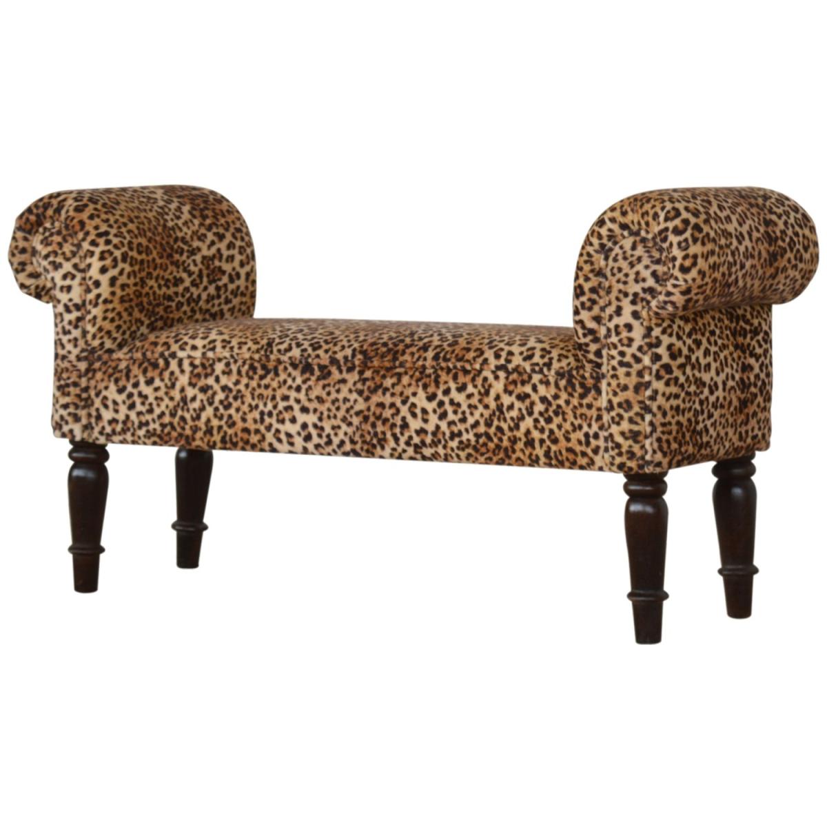 Modern Hand Crafted Leopard Print Velvet Bench - Brown