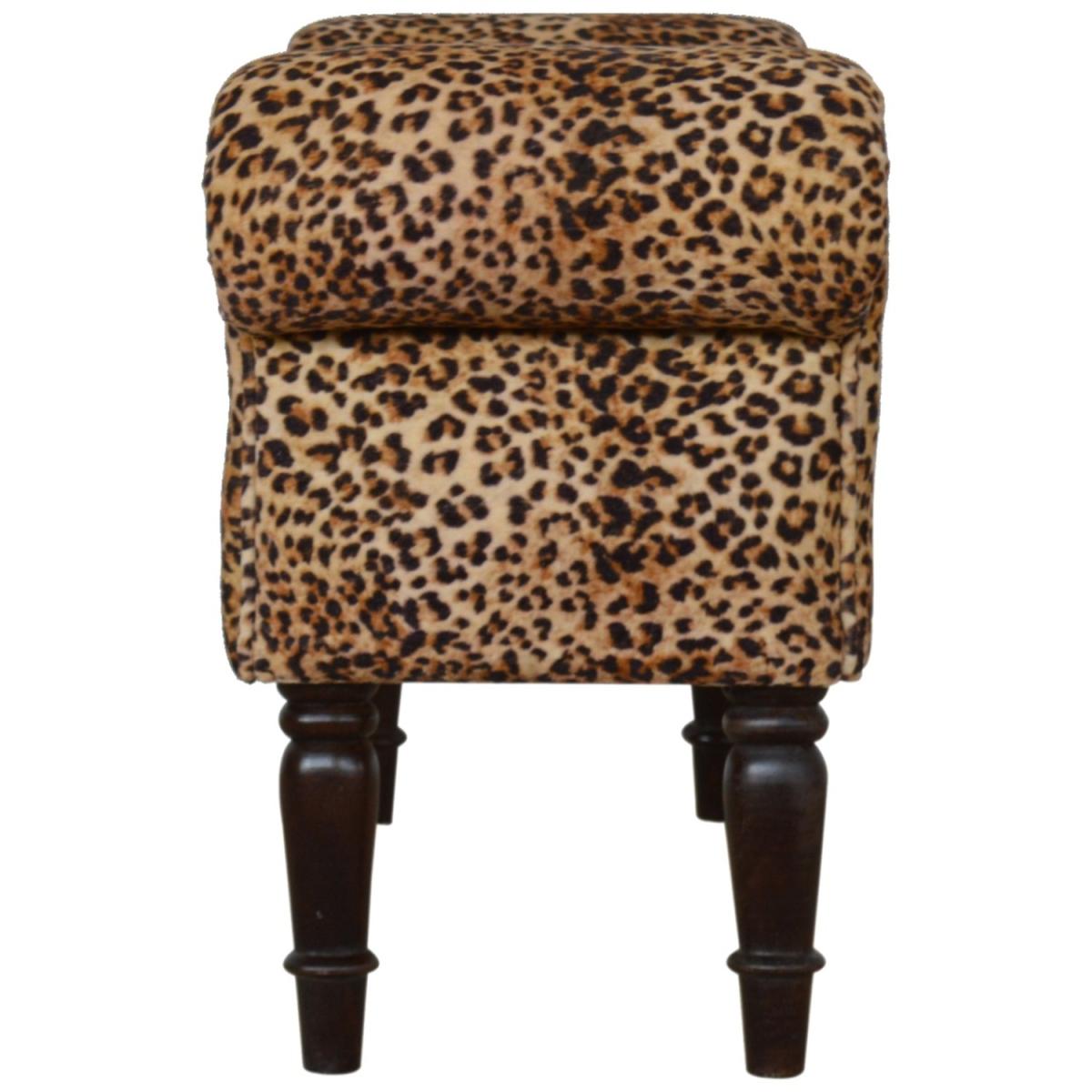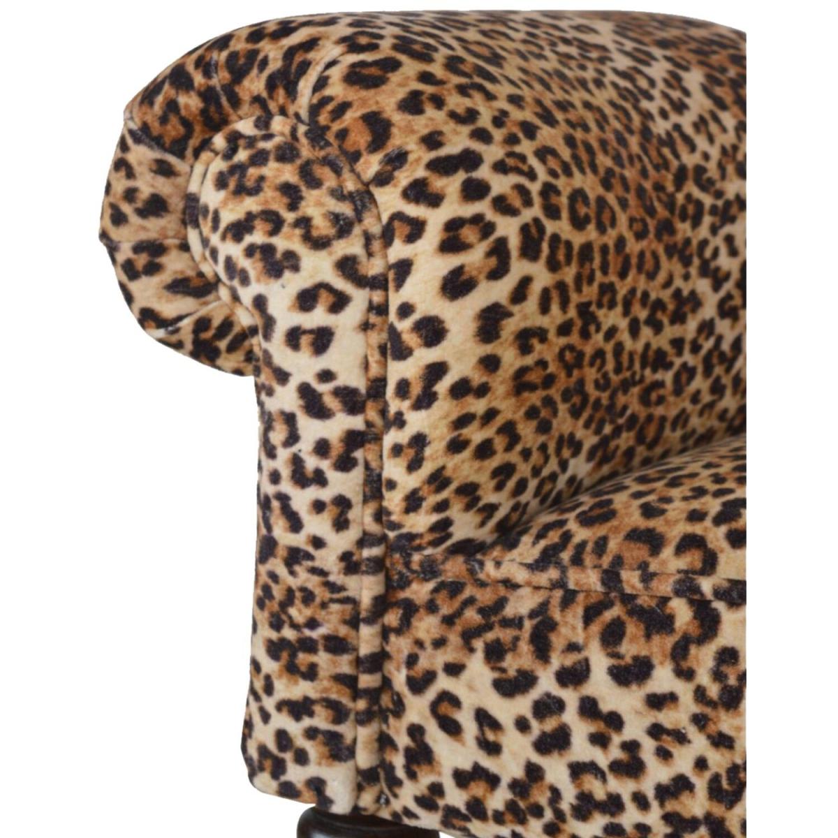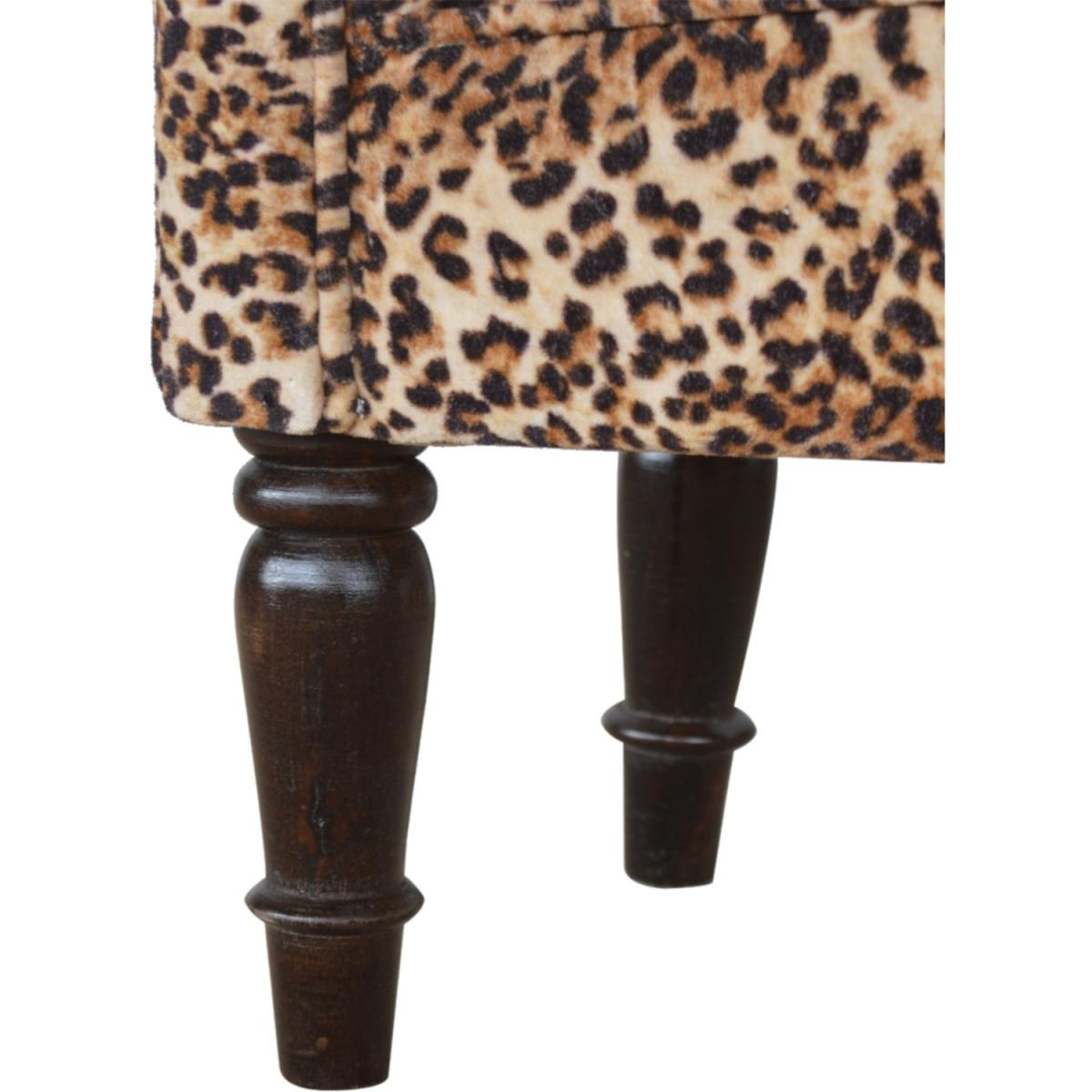 Modern Hand Crafted Leopard Print Velvet Bench - Brown