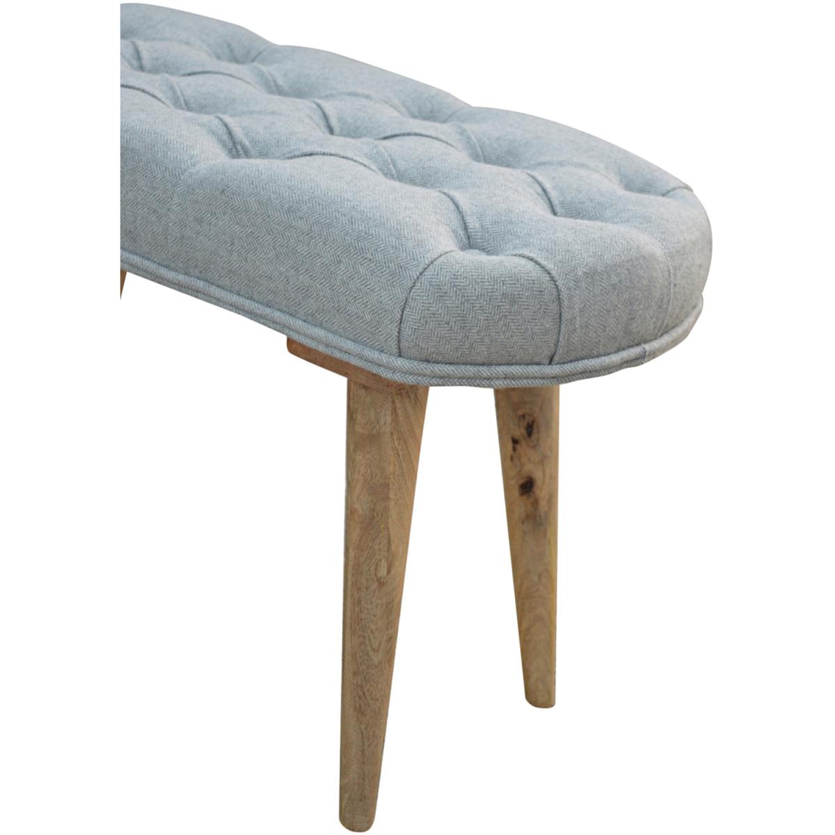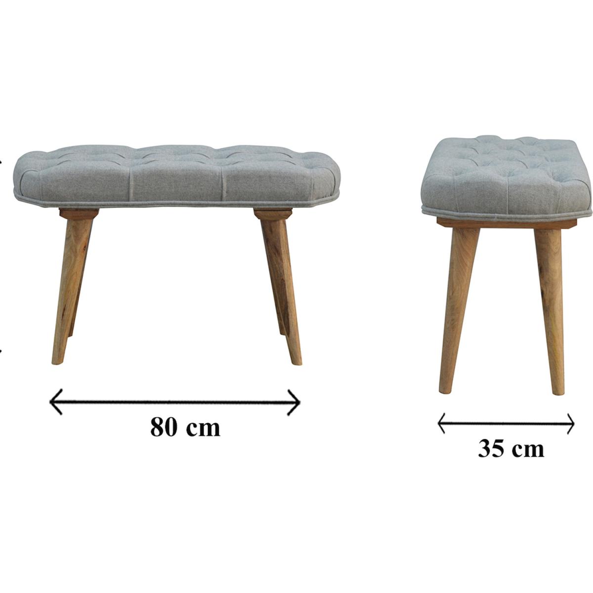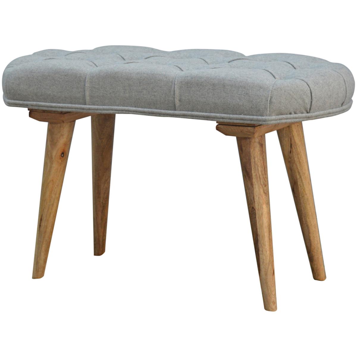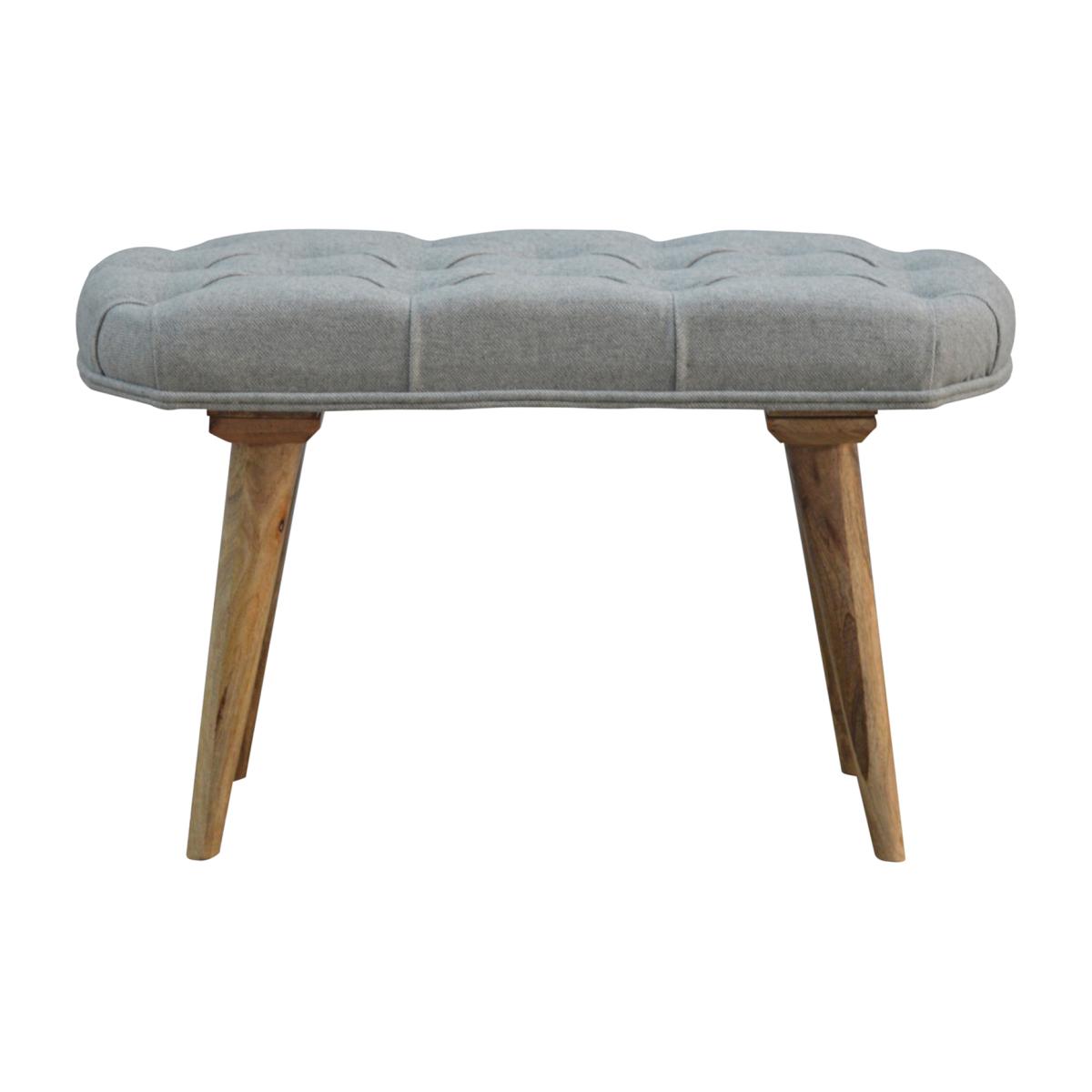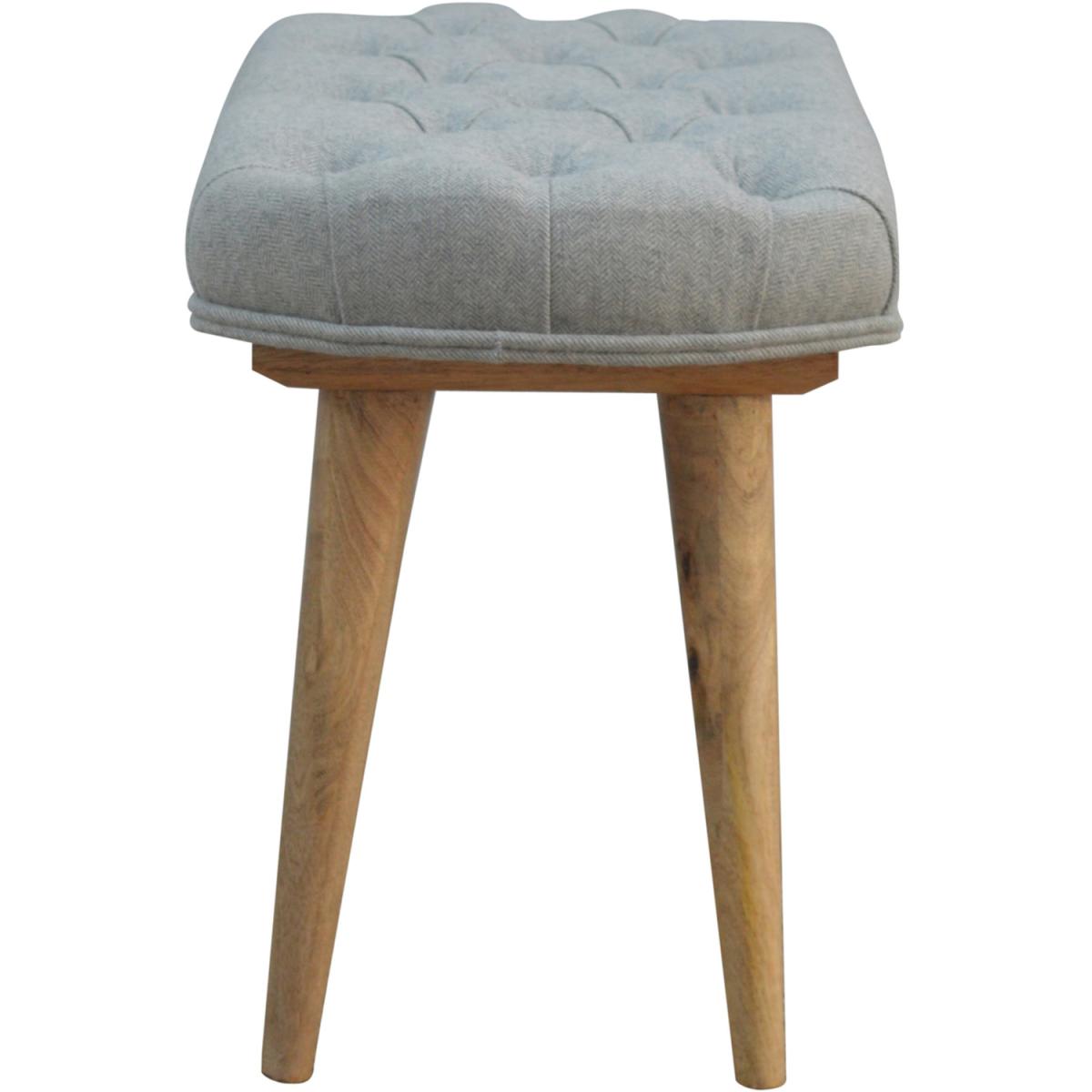 Modern Hand Crafted Nordic Style Bench with Deep Buttoned Grey Tweed Top - Grey