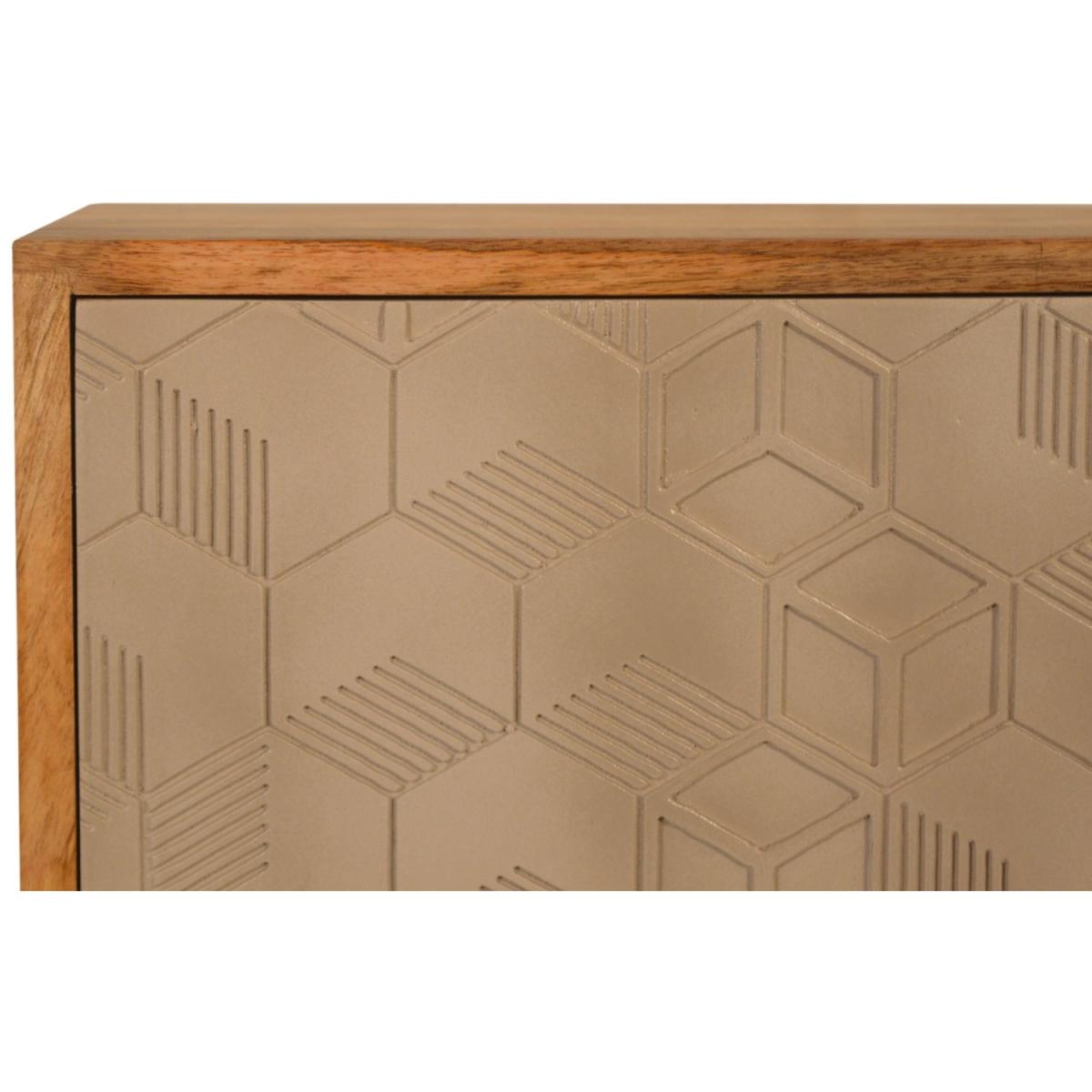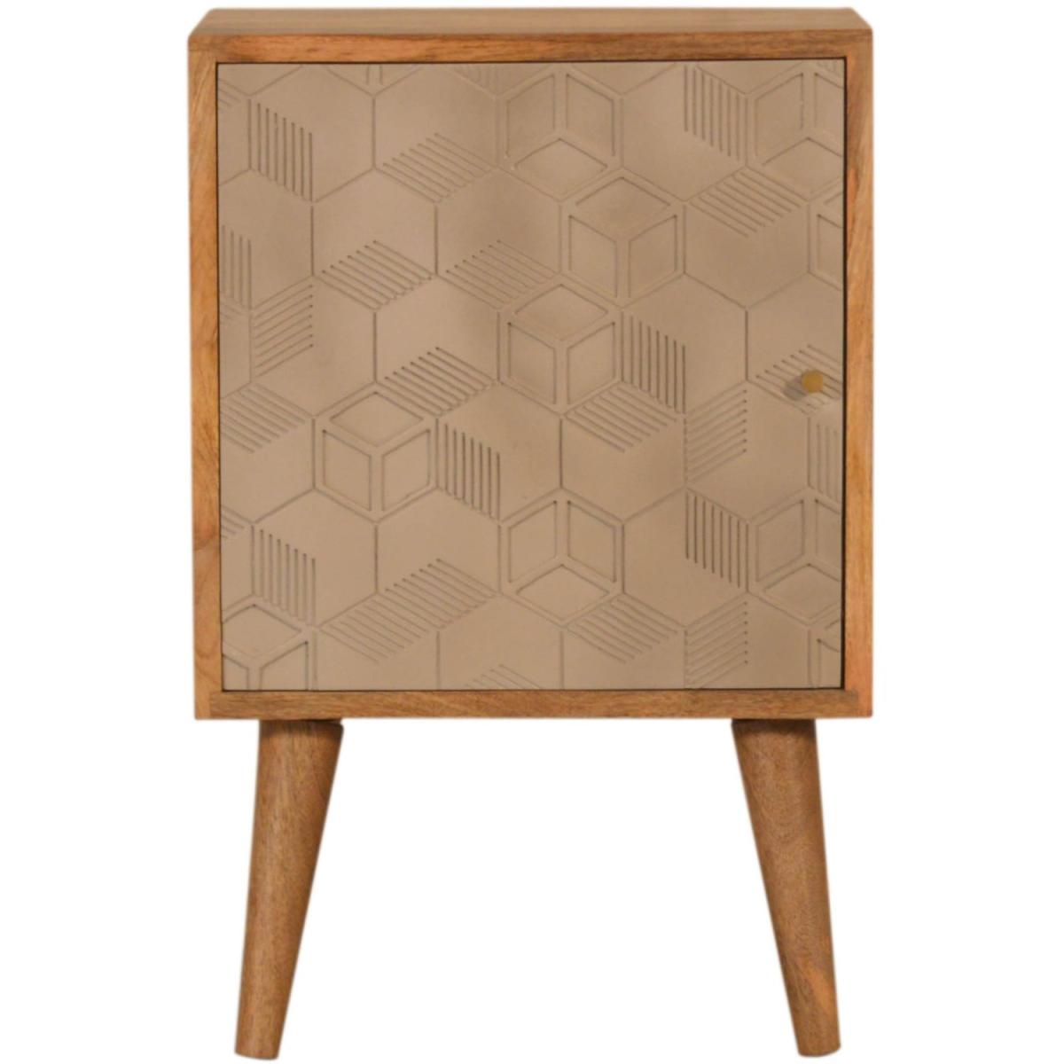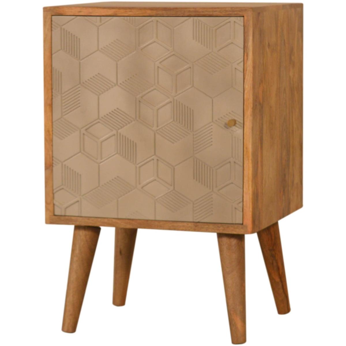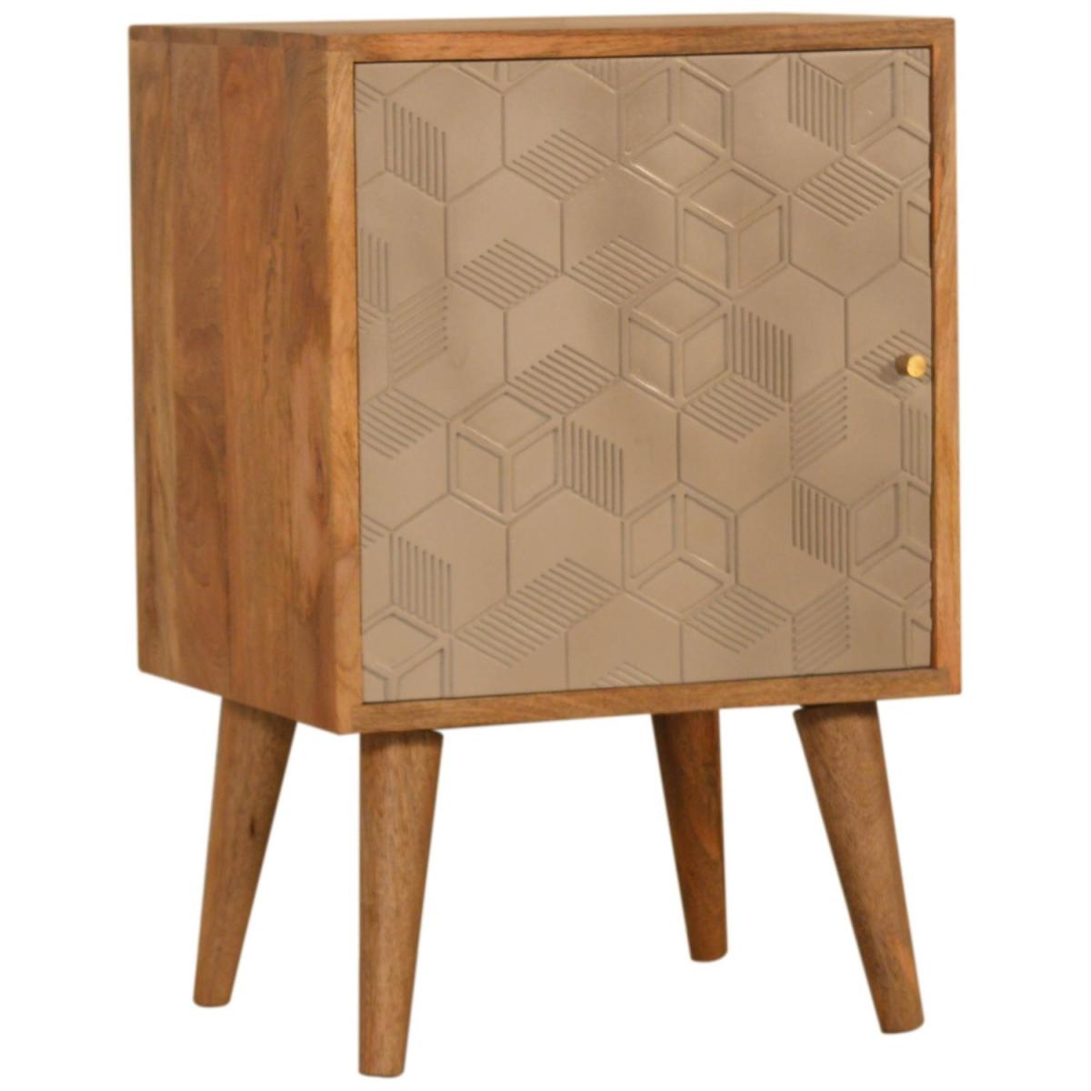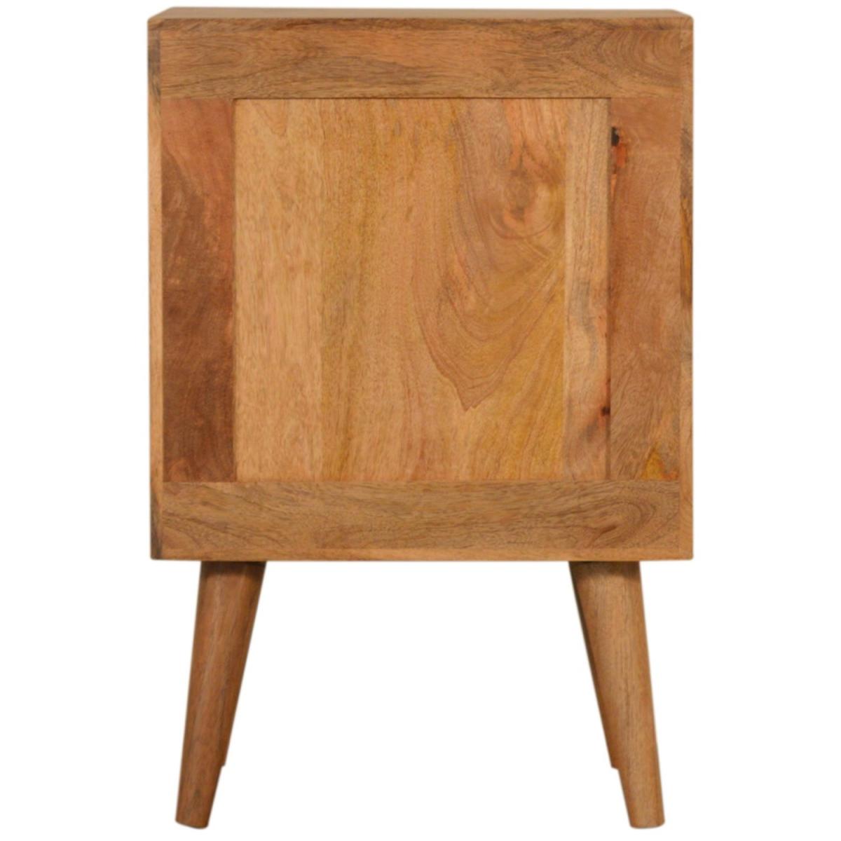 This stunning piece has been constructed from 100% solid mango wood and features nordic style legs. It provides useful storage with the space of 2 drawers and is finished with shiny knobs. The champagne cube design is partnered nicely with the finish of the wood giving an overall modern and chic look.