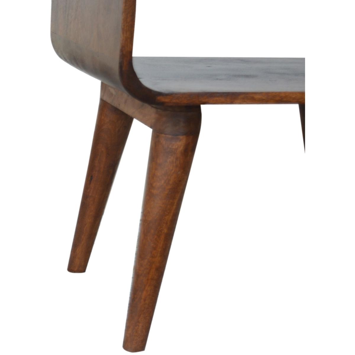 The bedside table is a beautifully crafted piece that offers a warm, organic feel, making it a versatile addition to both modern and rustic interiors. I love its handcrafted detailing and rich brown tone, which enhances natural textures and pairs well with neutral or patterned bedding. It works especially well in Scandinavian, mid-century modern, or eclectic schemes. Practical styling tips include using minimal accessories to let its craftsmanship shine - perhaps a simple ceramic lamp, a small plant, or some favourite books. Its understated yet distinctive design makes it a functional statement piece that adds character without overwhelming the space.