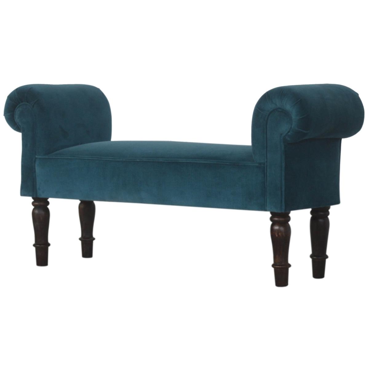 Modern Hand Crafted Teal Velvet Bench - Teal