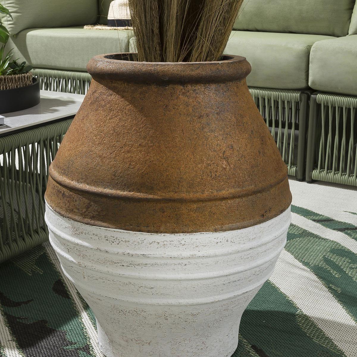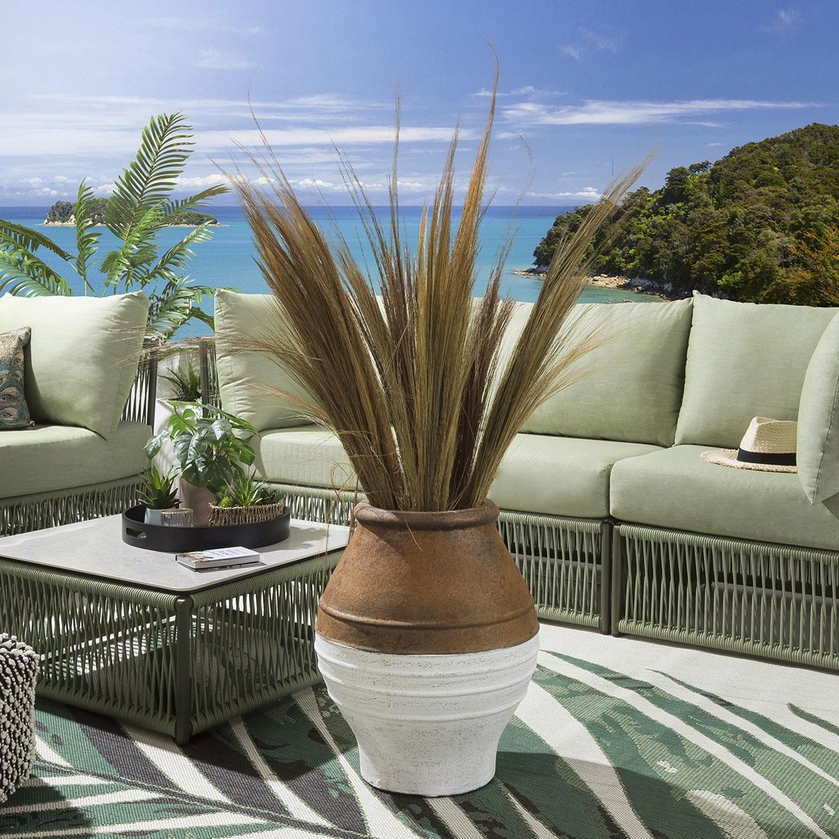 I love this large olive green pot because it adds a sophisticated touch to both indoor and outdoor spaces. Its substantial size makes it ideal for creating a statement with tall or cascading plants, and the earthy tone helps it seamlessly blend with natural elements or neutral interiors. It works particularly well in minimalist or boho-inspired settings, where its handmade detail can be showcased with lush greenery or dried grasses - like the arrangement in the image. For styling, I recommend pairing it with a variety of plant heights and textures to avoid a flat look, and placing it where it gets plenty of light to highlight its handmade, artisanal quality.